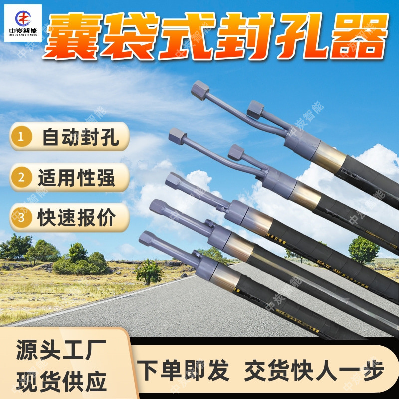 矿用囊袋封孔器是专为煤矿瓦斯抽采、注浆堵漏设计的核心装备,采用“两堵一注”自动化工艺。产品由注浆管、爆破阀、阻燃囊袋、管箍等组成,通过注浆泵加压使囊袋膨胀,形成多层带压密封结构,有效封闭钻孔裂隙。其工作原理为:浆液注入两端囊袋后膨胀贴合孔壁,当压力超过设定值(如1.5MPa)时爆破阀启动,浆液填充中间缝隙实现立体封堵。