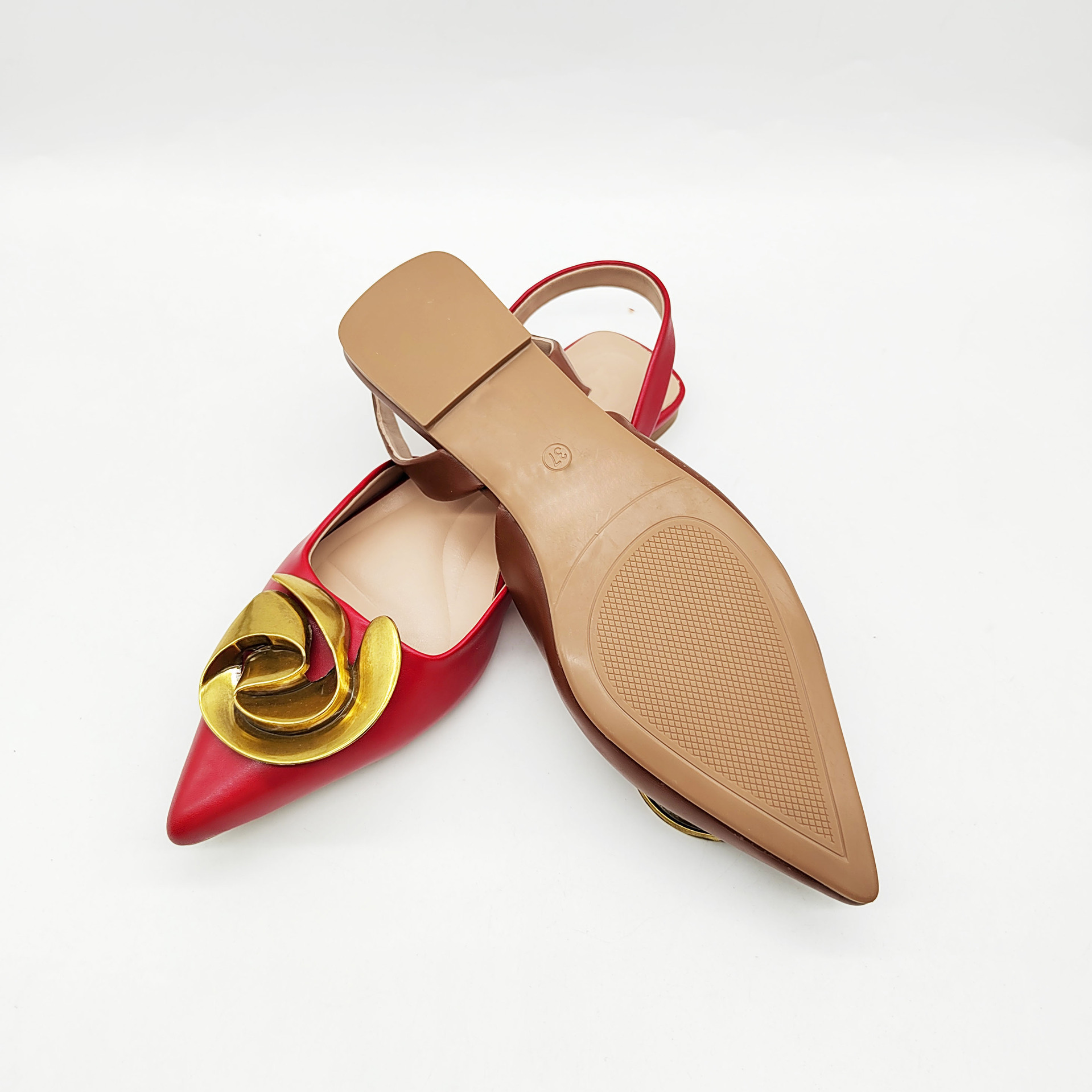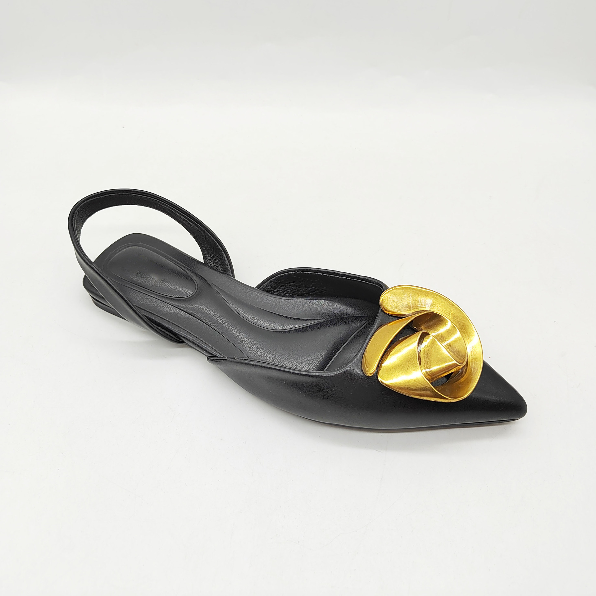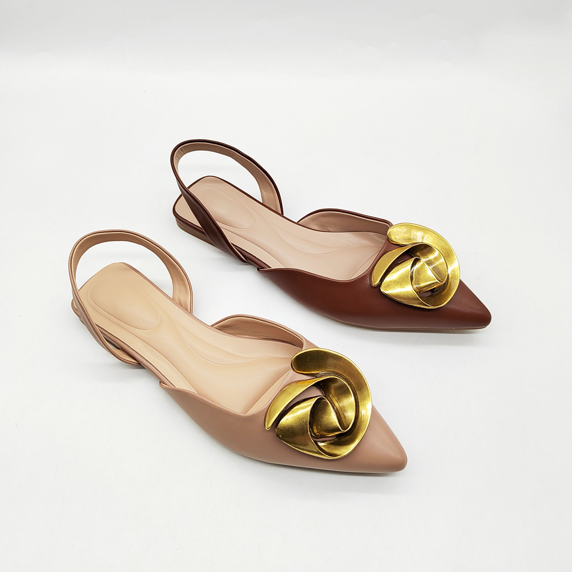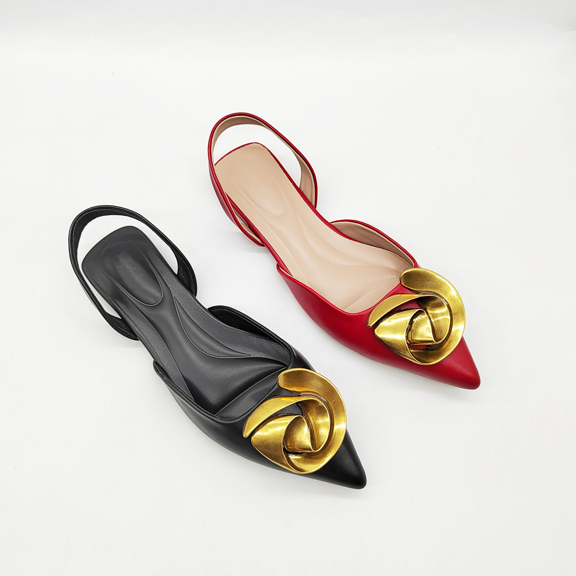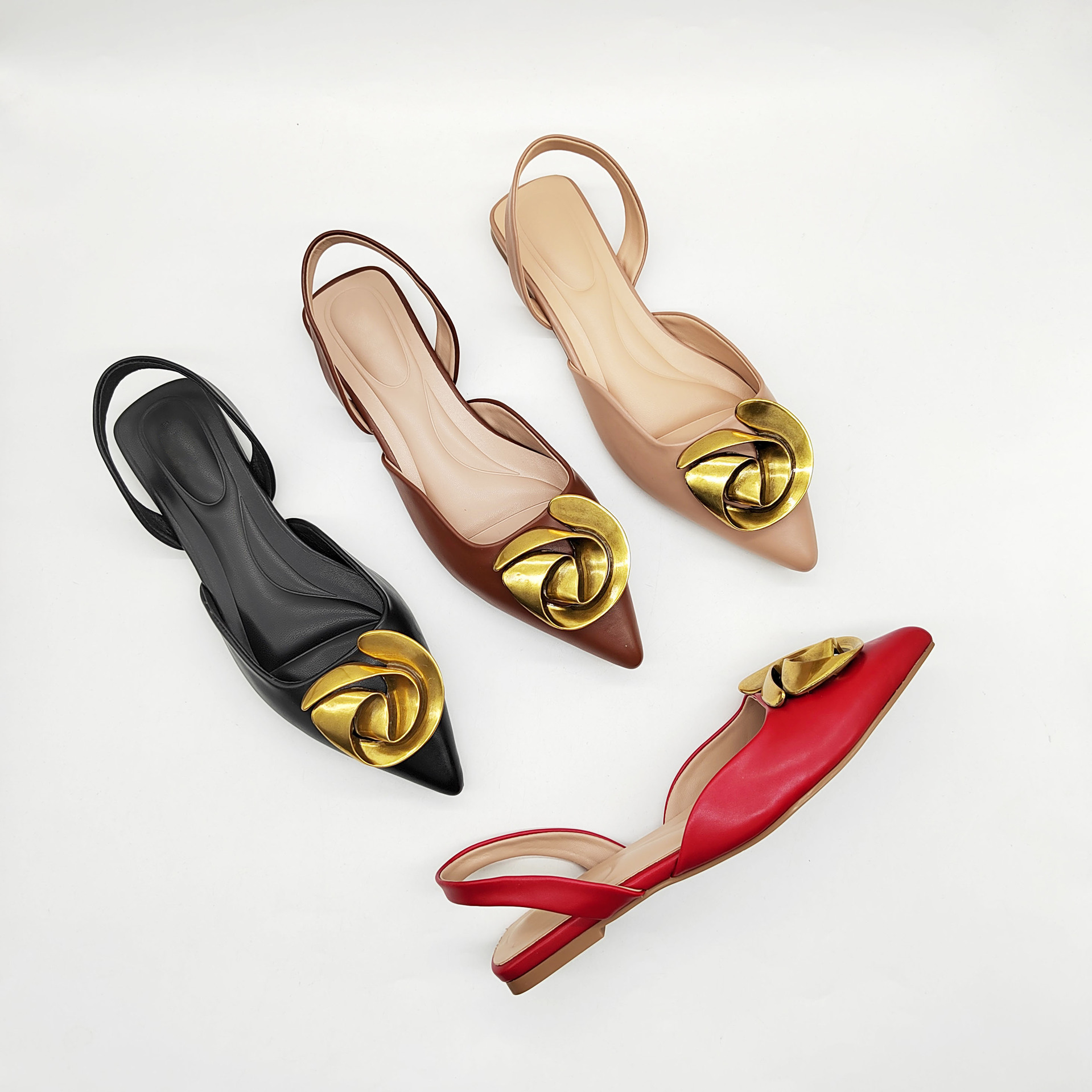 ZA バオトウ バックホール サンダル メタルバックル フラット サンダル ファッション ポインテッドトゥ 婦人靴 外国貿易 大きいサイズの靴 フレンチフラットシューズ