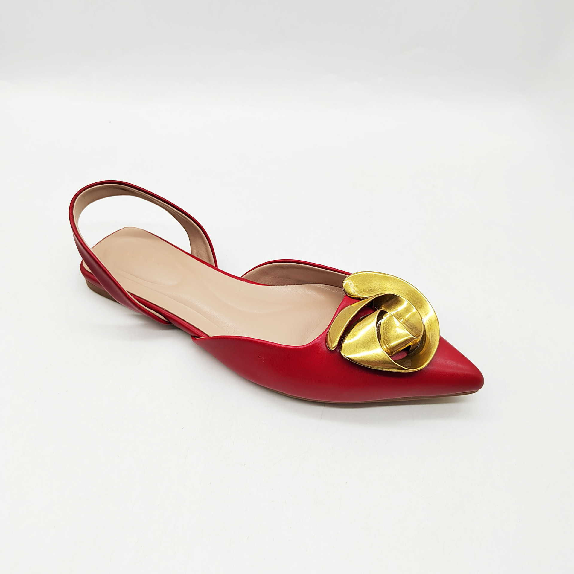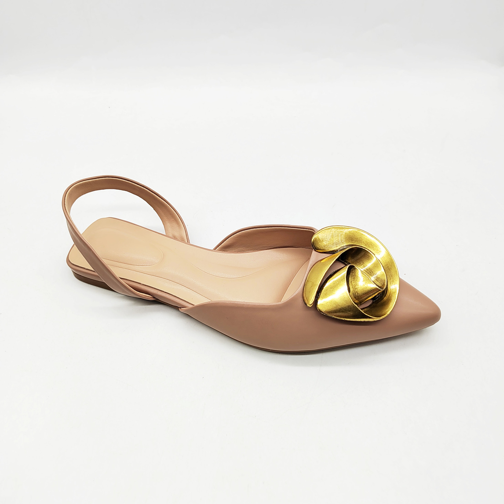 外贸新款夏季平底尖头凉鞋女时尚金属花朵饰扣平底鞋时尚外穿女鞋