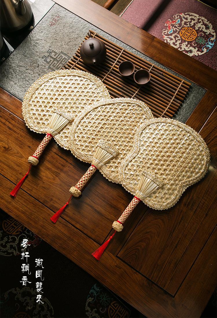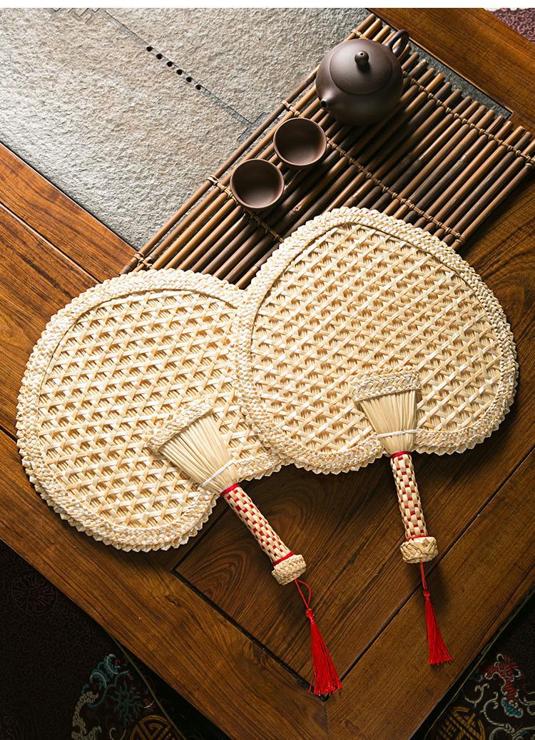 麦わら携帯扇子、夏の涼しい手回し扇子