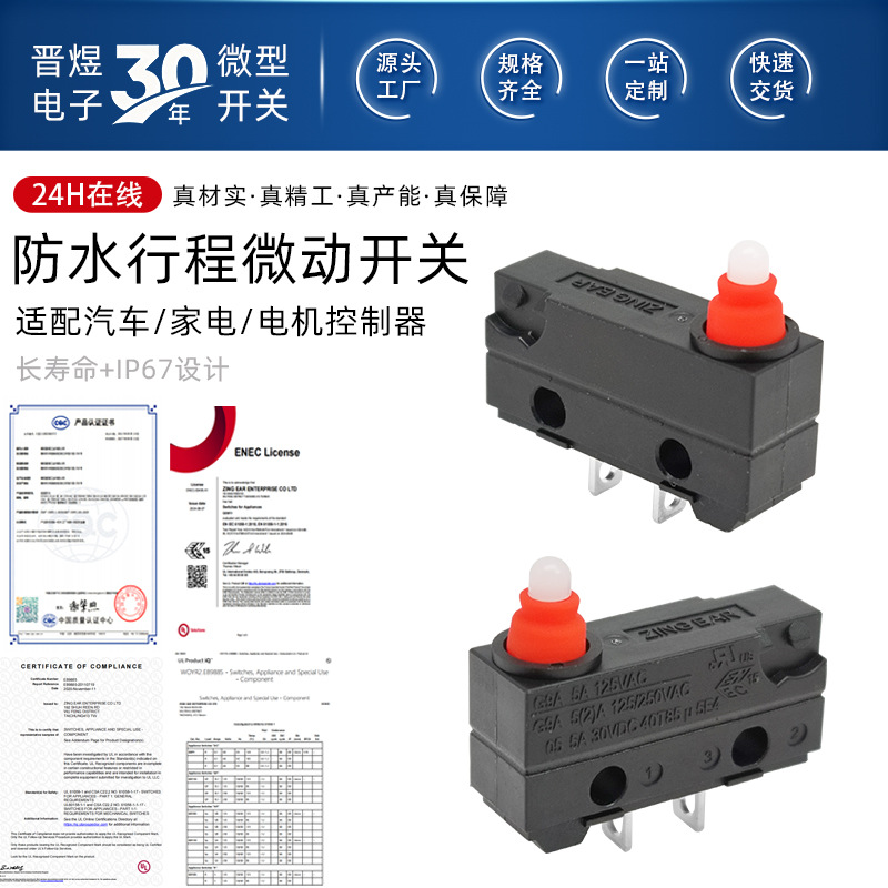 G9A05新能源电动汽车充电枪防水微动开关晋煜厂家ZINGEAR微动开关
