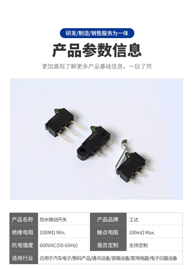 GD-1 防水マイクロスイッチ IP67 新エネルギー車のドアロックスイッチハンドルレスストレートハンドル小型マイクロスイッチ