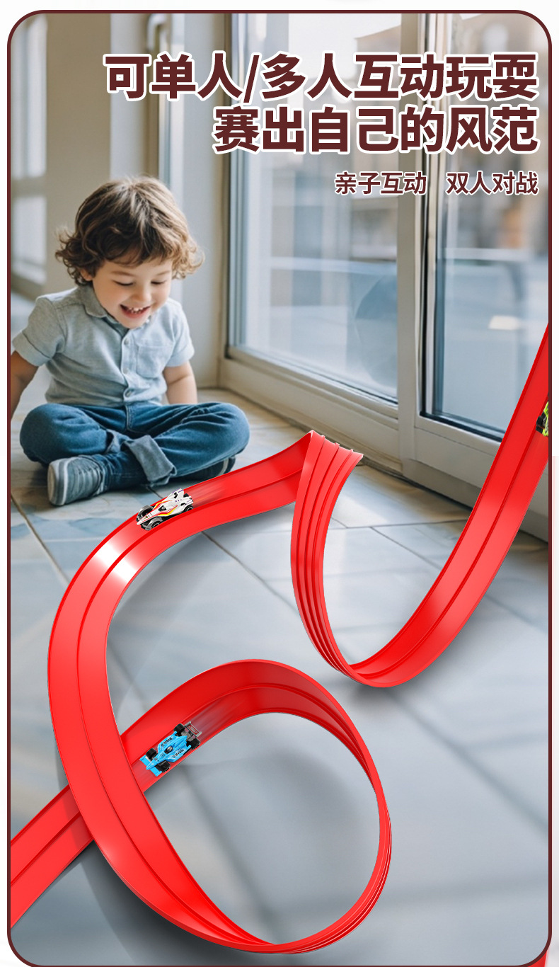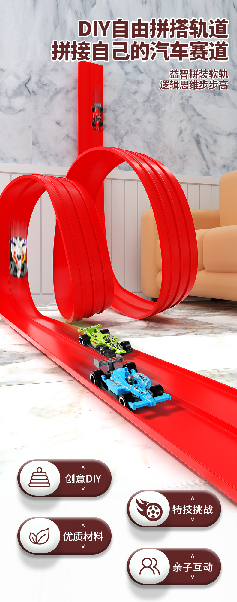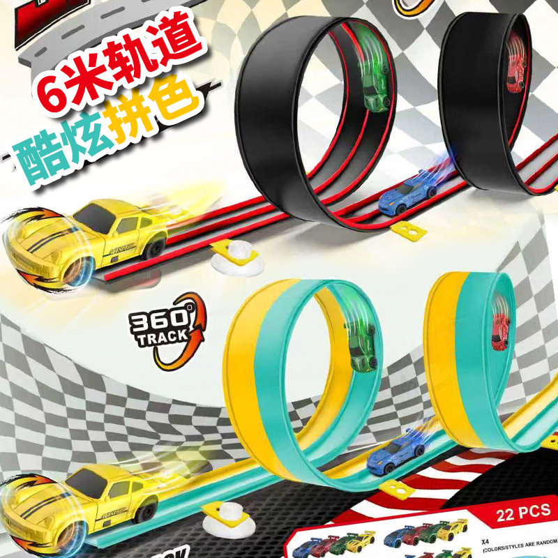 跨境软胶轨道赛车玩具diy拼装跑道惯性滑行汽车竞技儿童轨道玩具