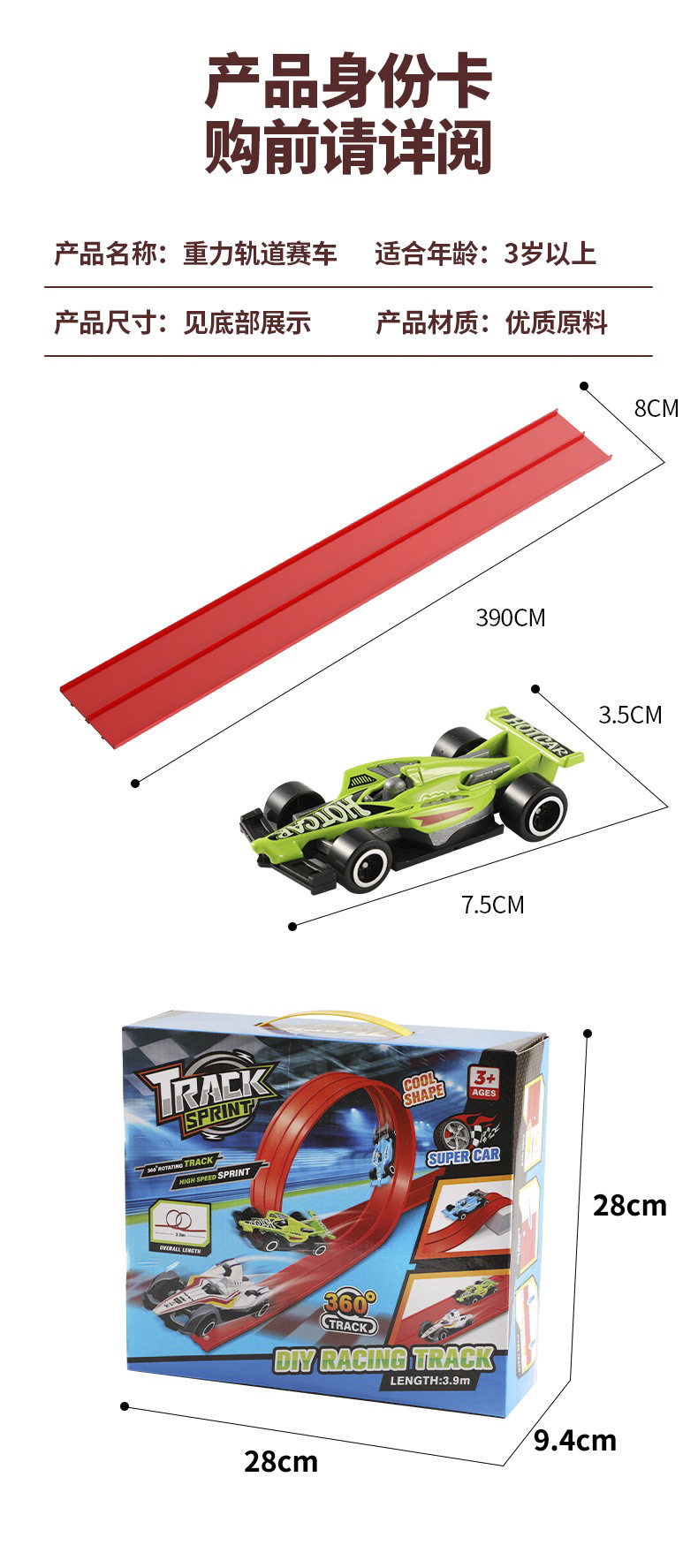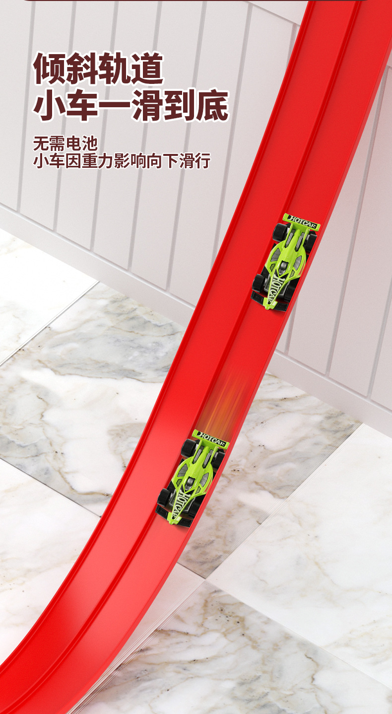 跨境儿童男孩酷炫DIY拼装赛道铝合金赛车重力惯性滑行轨道车玩具