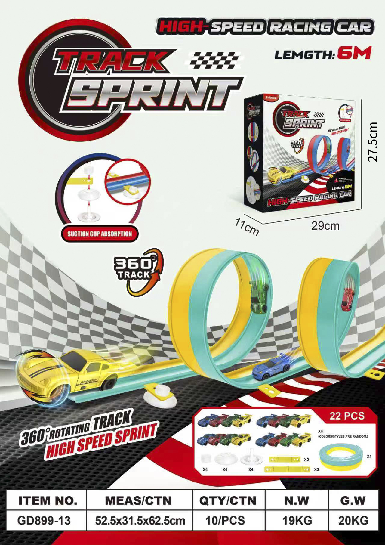 跨境新DIY软轨赛车自由旋转惯性双人对战轨道车儿童玩具新礼盒装