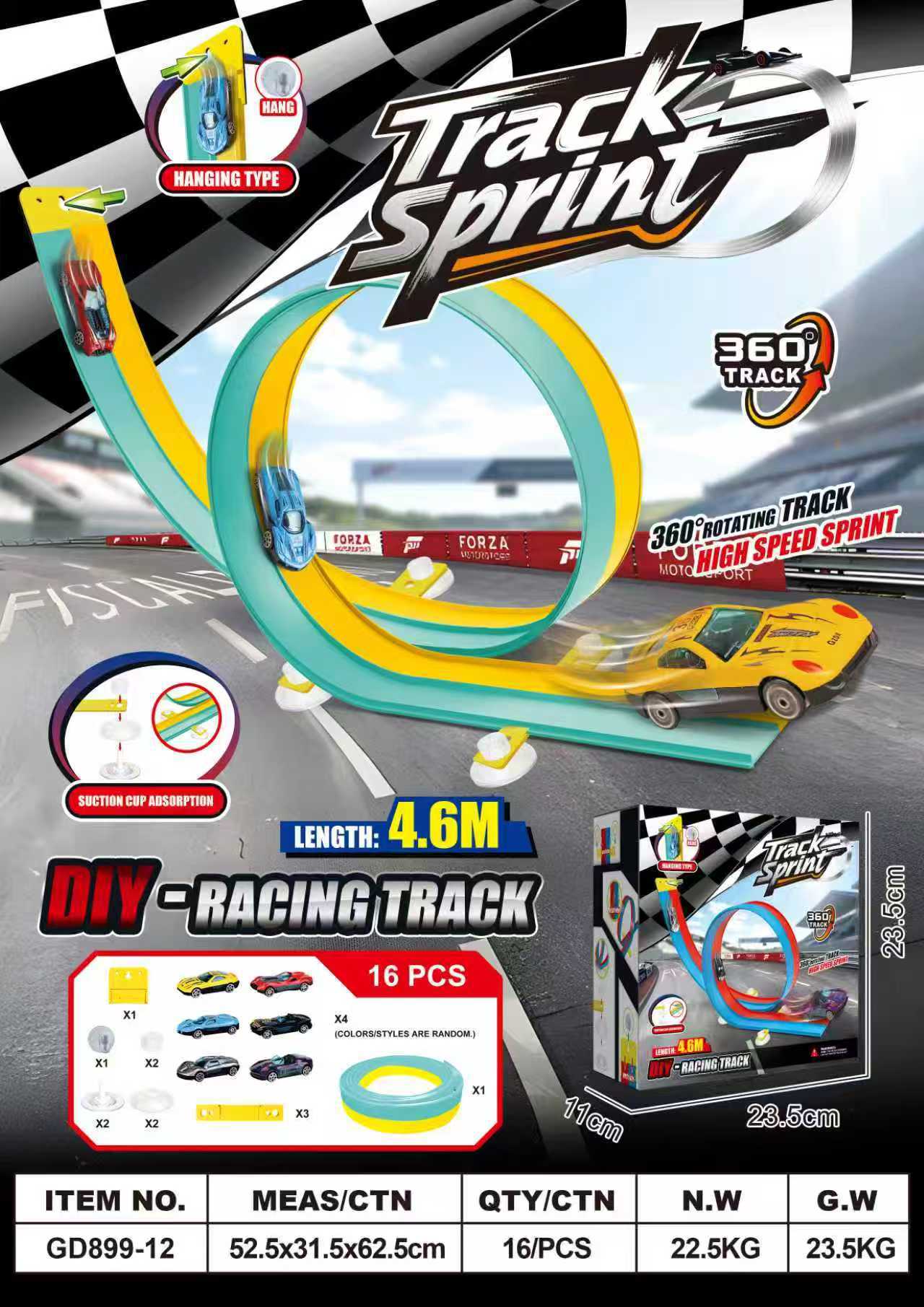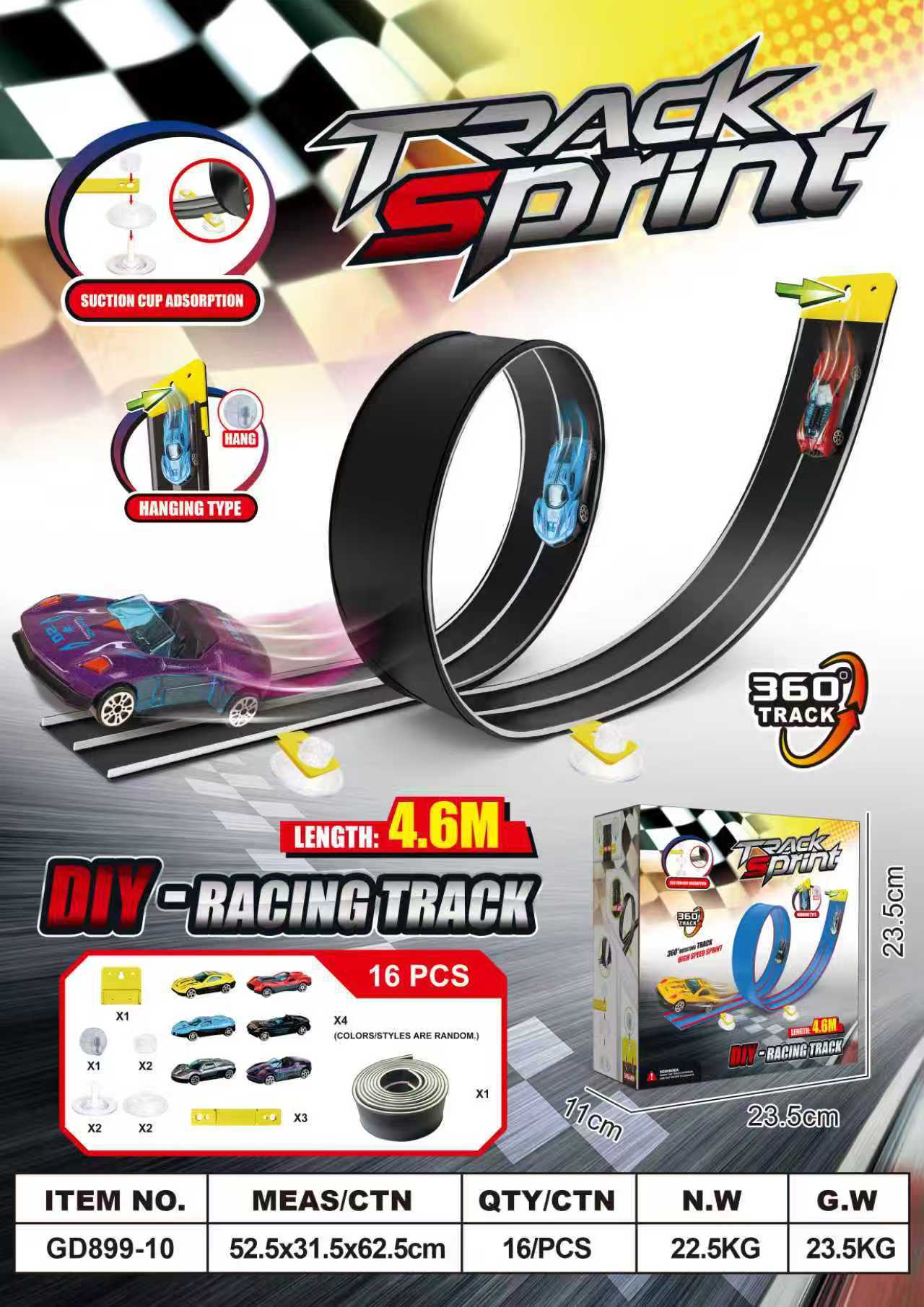 跨境儿童男孩酷炫DIY撞色拼装赛道滑行铝合金回力赛车轨道车玩具