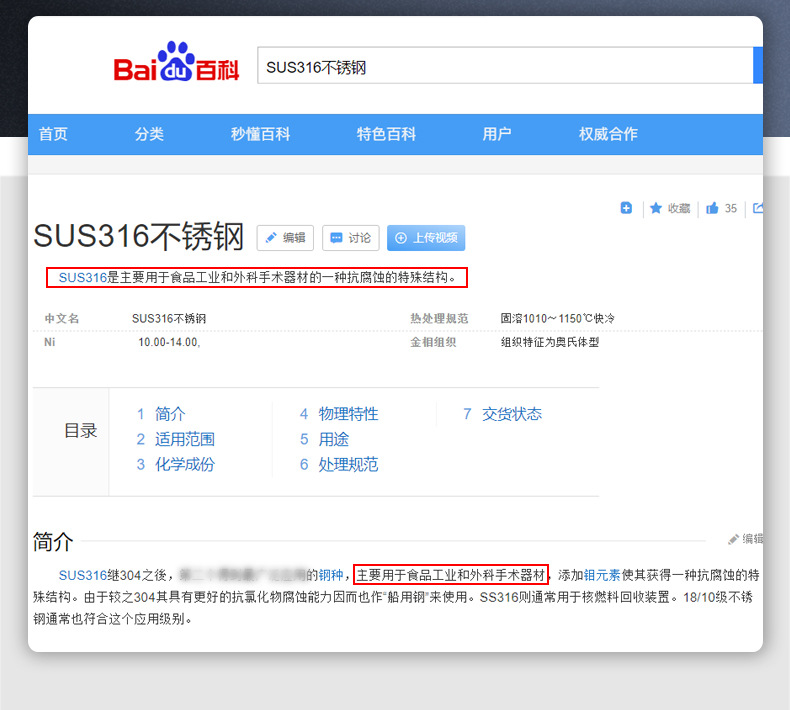 材料 316 ステンレス鋼