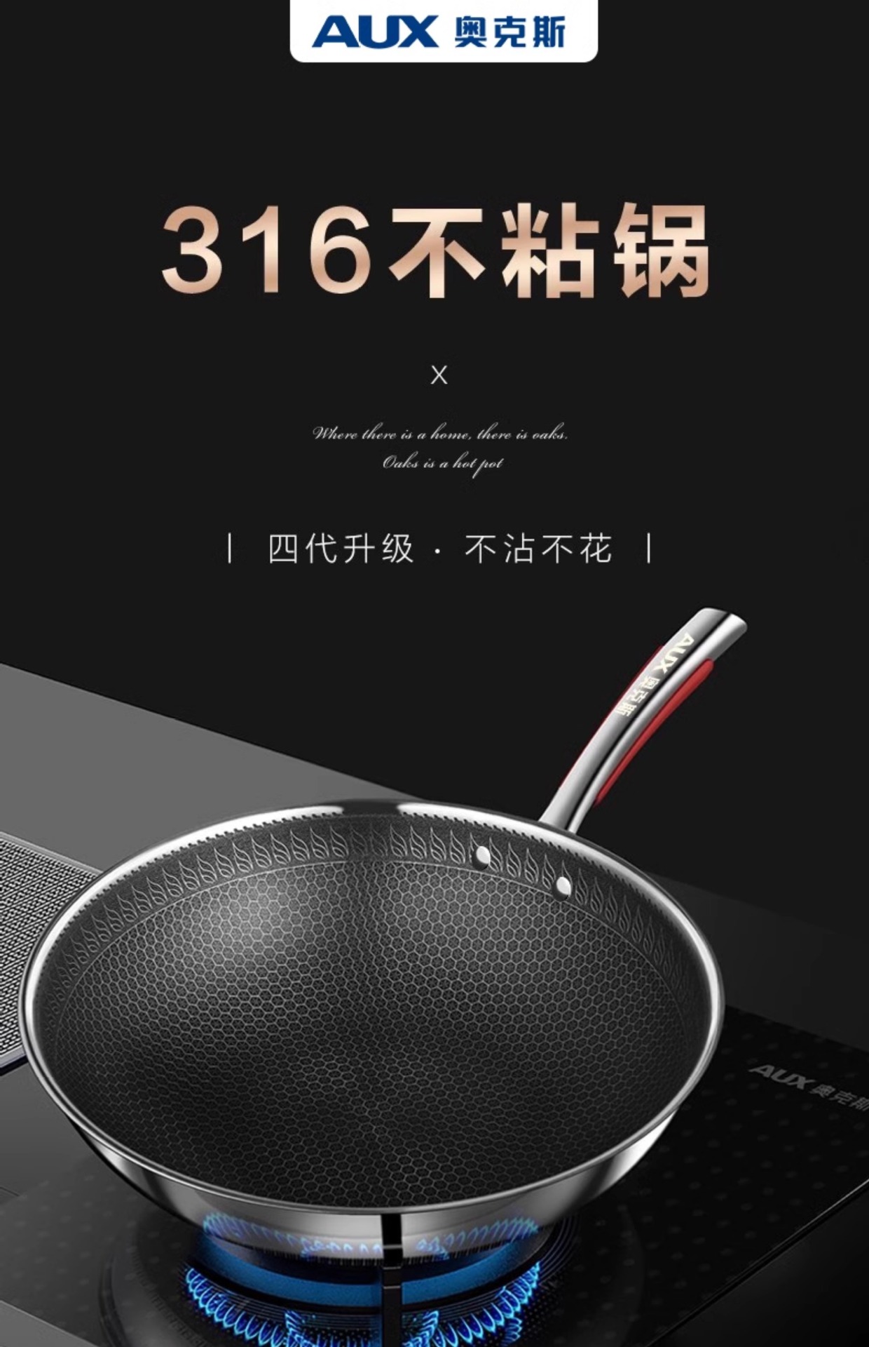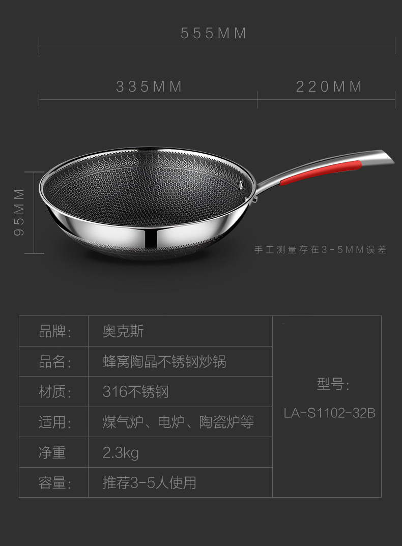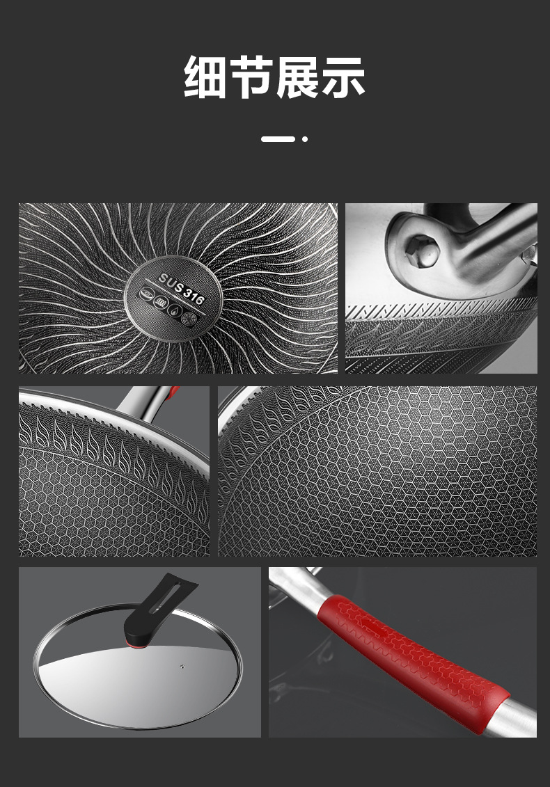 オークス 316 ステンレス鋼ハニカムノンスティックポット家庭寮中華鍋特別な調理鍋