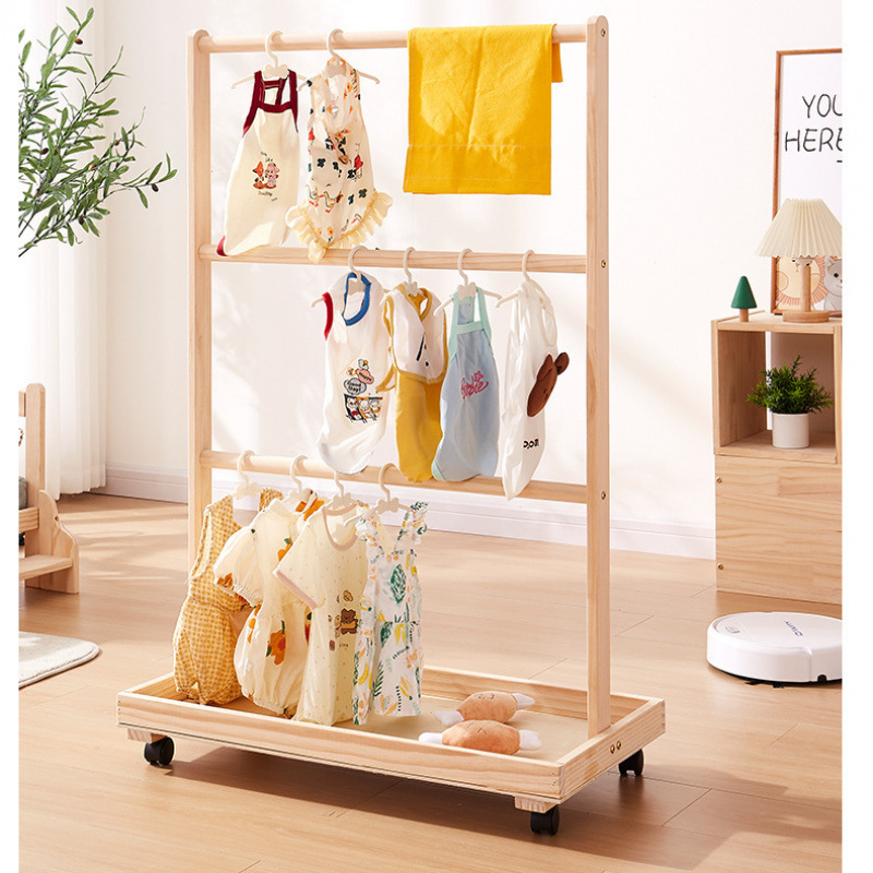 ペットの衣類ディスプレイラック無垢材の衣類ラック犬の寝室の床置き小型小型ロッド収納シンプル