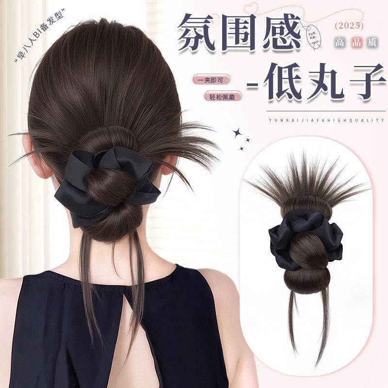 低扎丸子头假发女抓夹发圈鸡毛花苞头氛围感盘发神器蓬松假发包