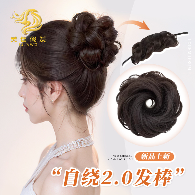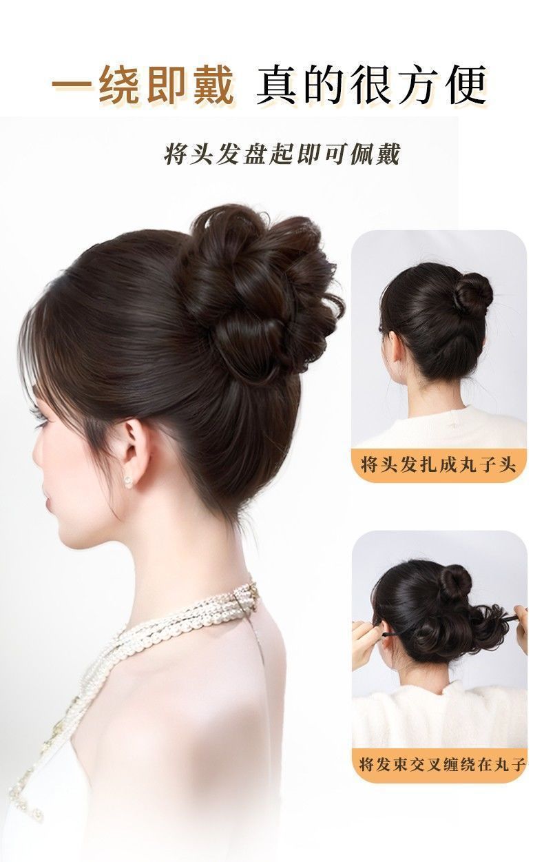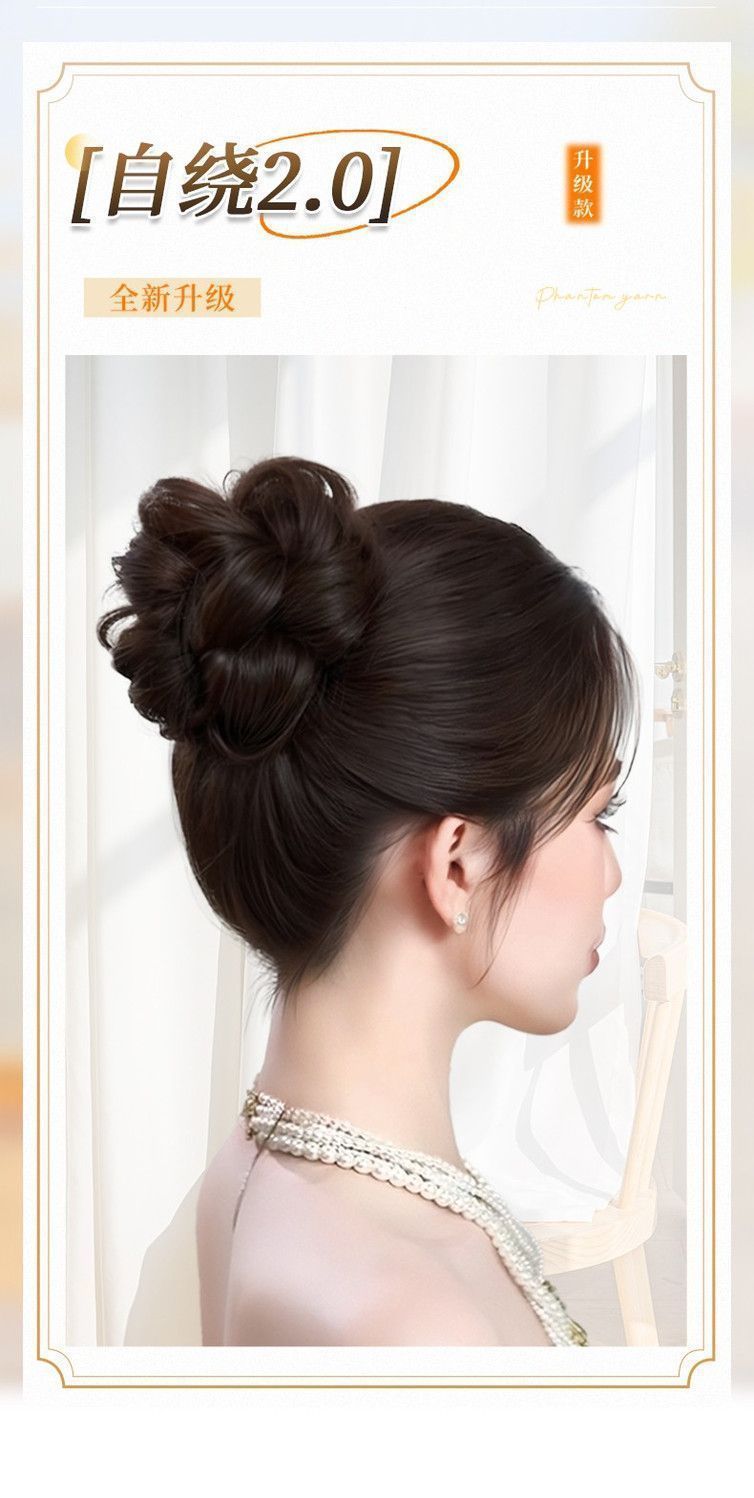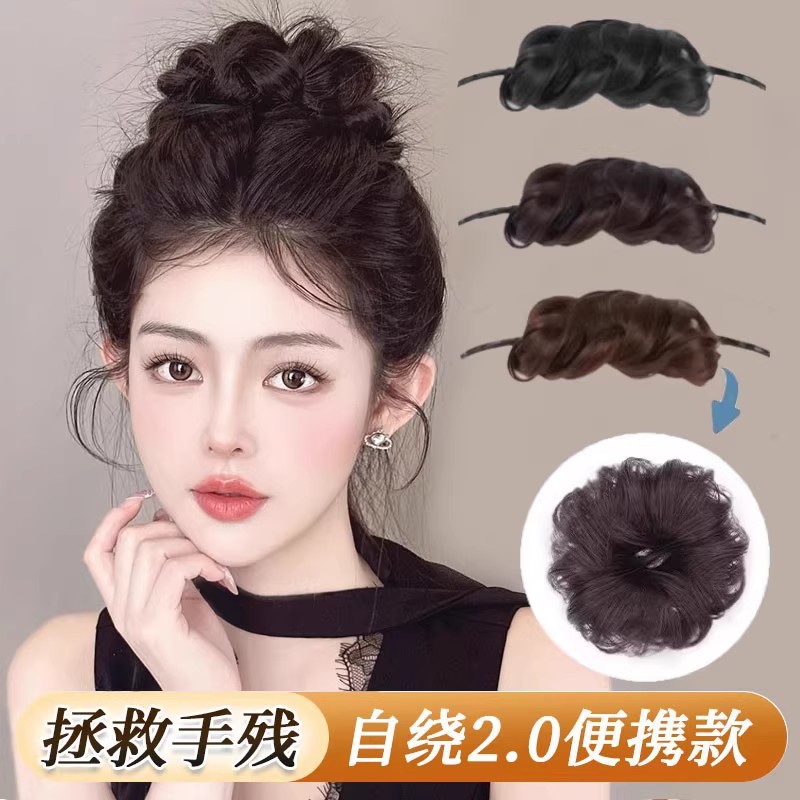 [セルフローリング2.0] ボールヘッドウィッグ、自然な増毛、髪の形を整えるツール、模擬千金の花のつぼみウィッグ、ヘアゴム