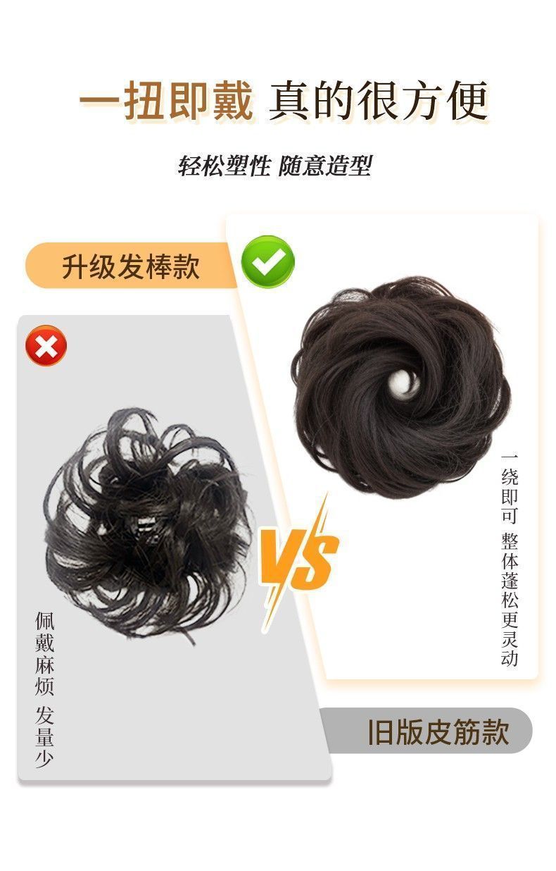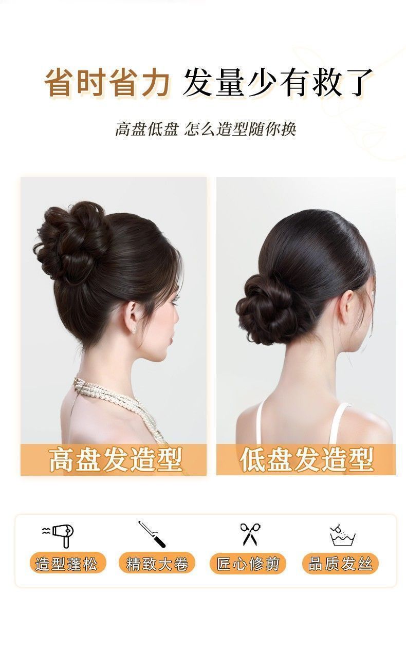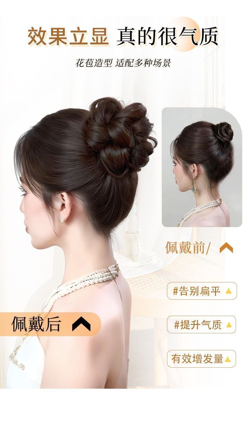 【自己巻き2.0】ナチュラルヘアボリュームアップヘアウィッグ、模擬娘つぼみウィッグ、ヘアゴム付きボールヘッドウィッグ