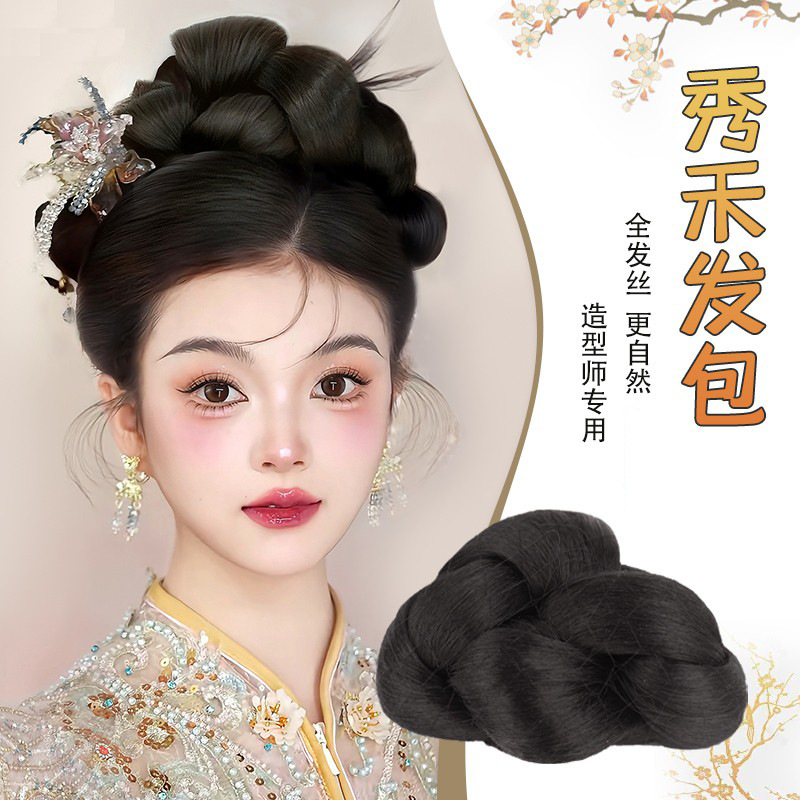 鳥の巣ミートボールヘアウィッグ、人工毛ヘアリング、ヘアアーティファクト、花のつぼみヘアパッケージ、自然な増毛ヘッドギア、グリッパー