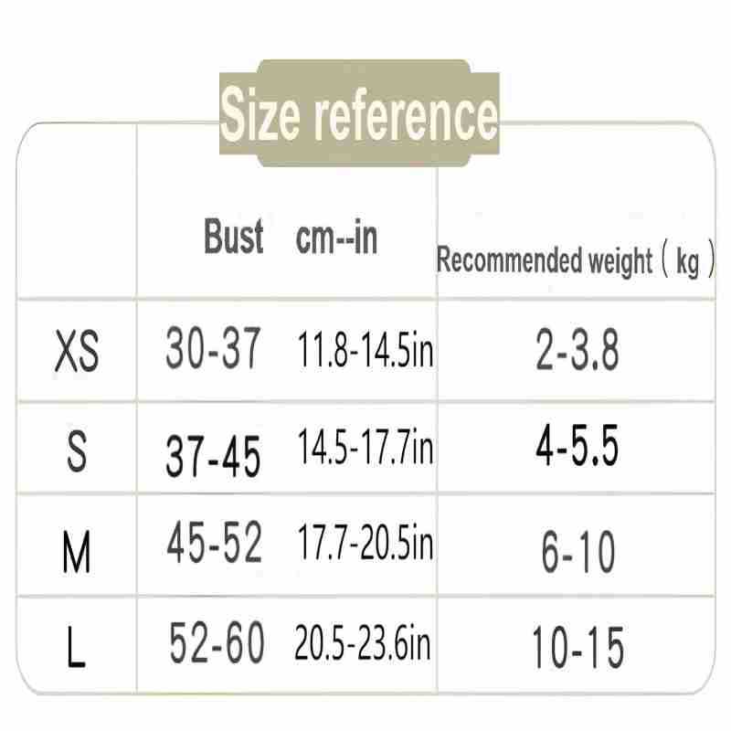 サイズ XS 適応体重 (2-4kg),S 適正体重 (4-5.5kg),M 適正体重 (6-10kg),L 適正体重 (10-15kg)