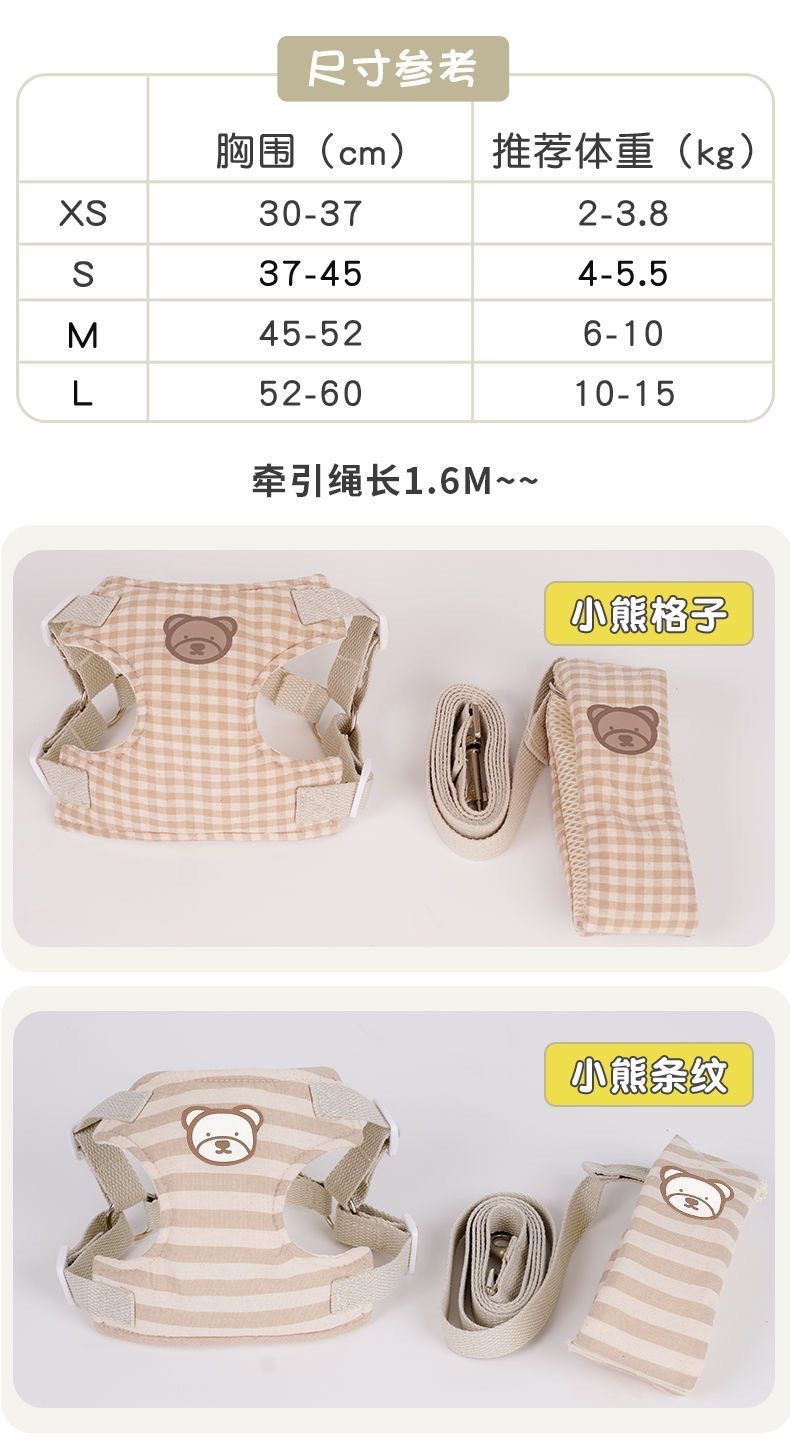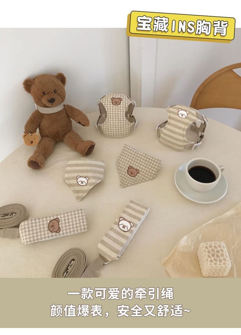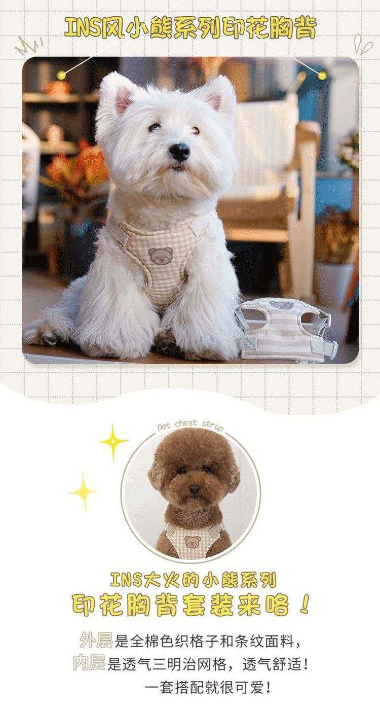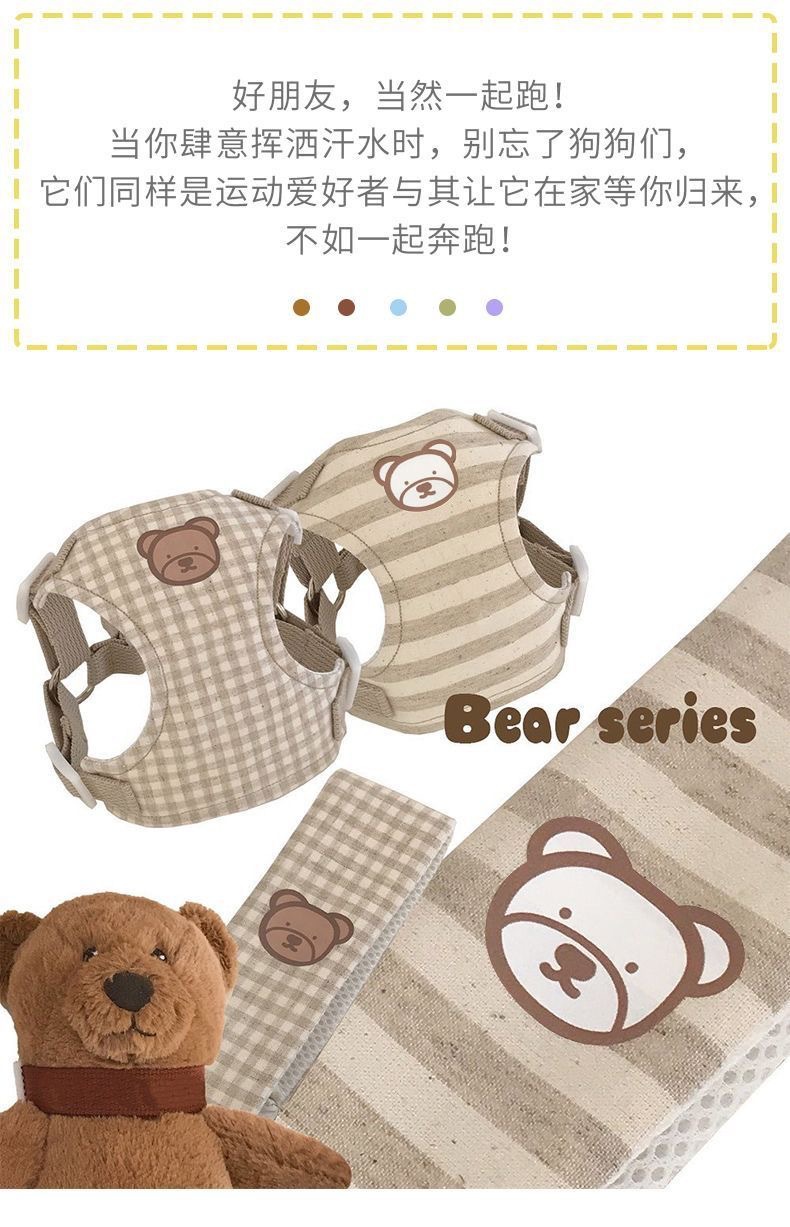 犬用韓国風可愛いクマ柄ハーネスペットテディビションシュナウザー外出用ハーネスリード服