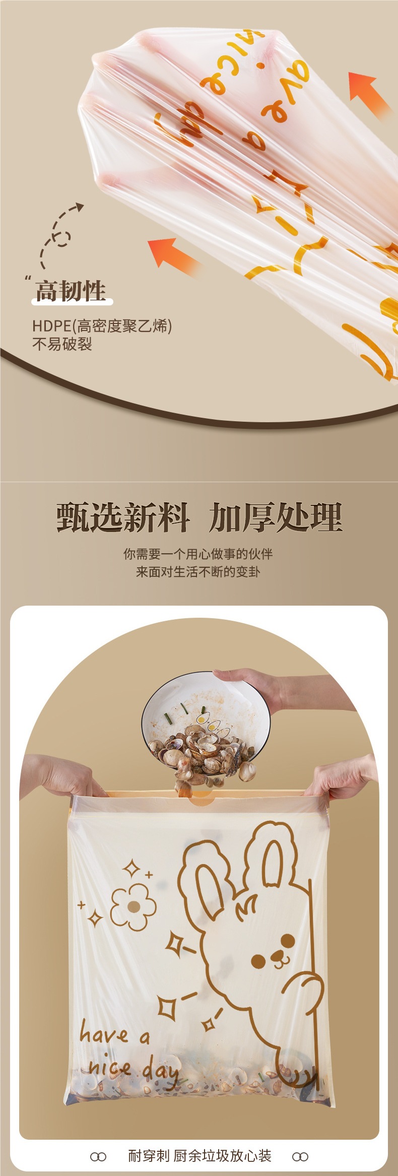 破れないゴミ袋、厚手の巾着ゴミ袋、キッチン家庭用大型ポータブル寮ビニール袋閉鎖メーカー
