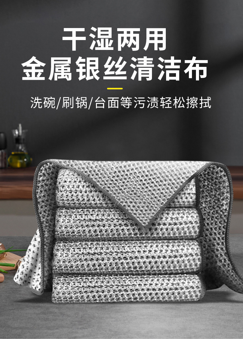 厚手の銀糸雑巾の皿洗い布は超耐磨耗性があり、油をつけずに家庭用台所の調理台の清潔な布を汚れさせる