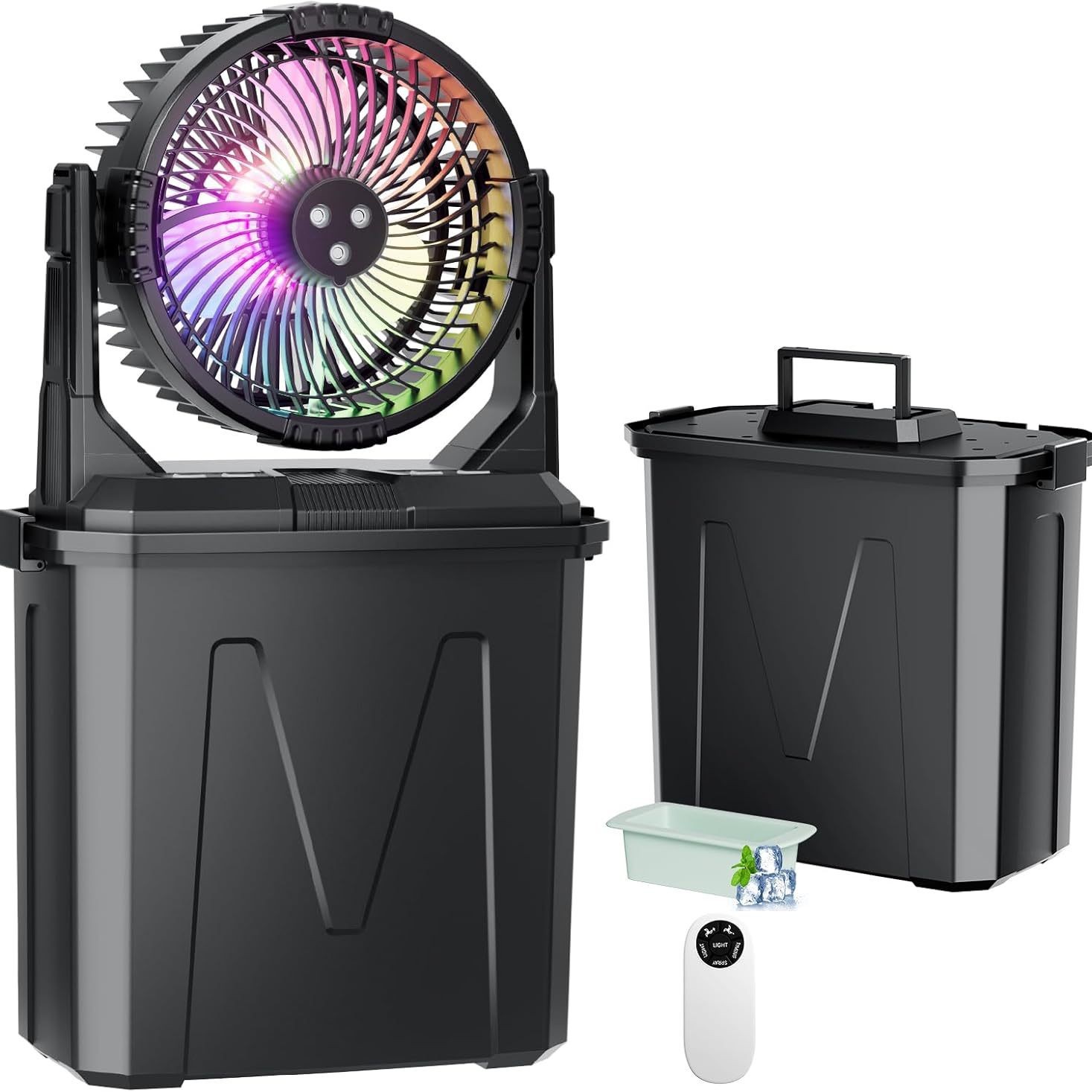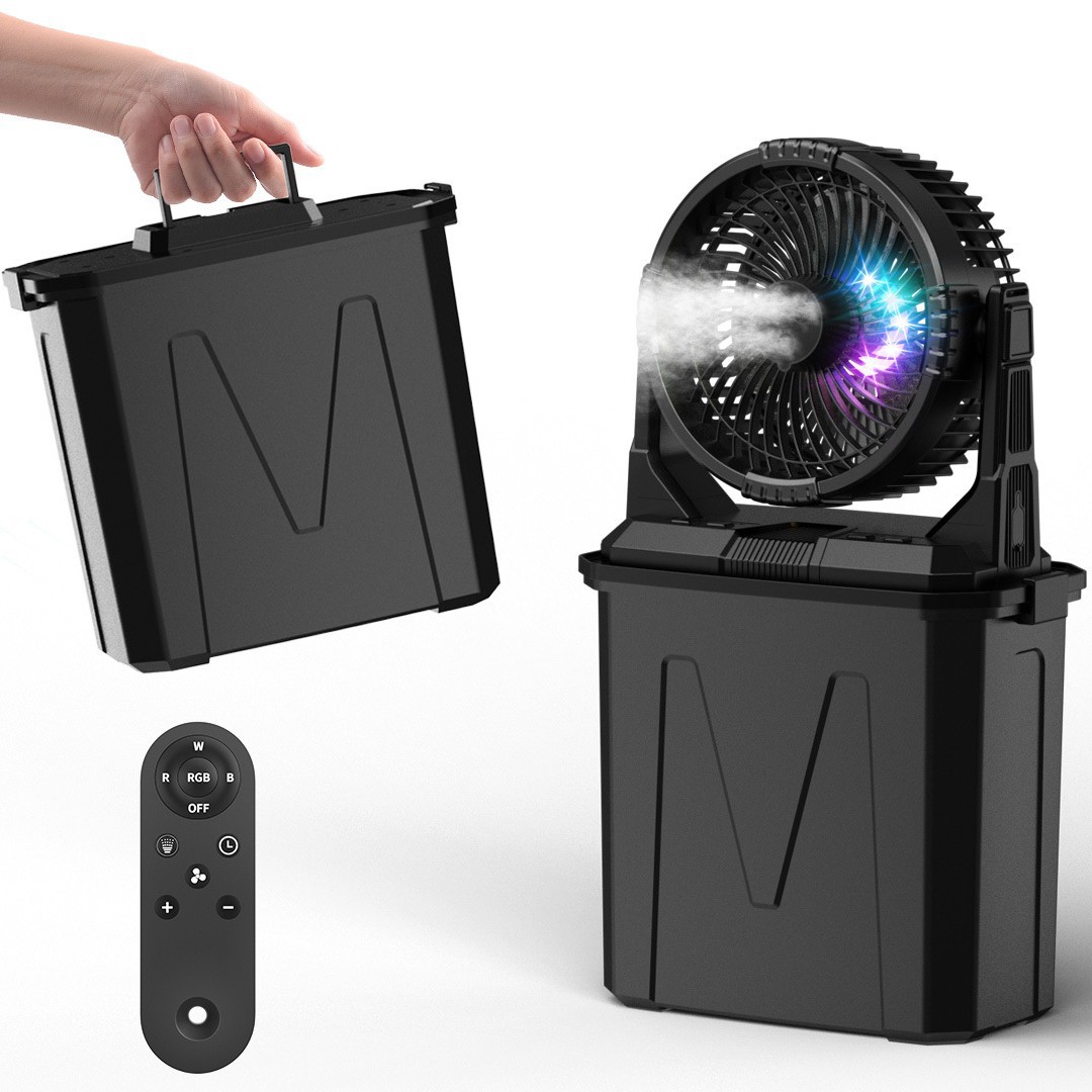 户外便携遥控喷雾风扇加水加冰露营电风扇超大续航RGB风扇灯10L