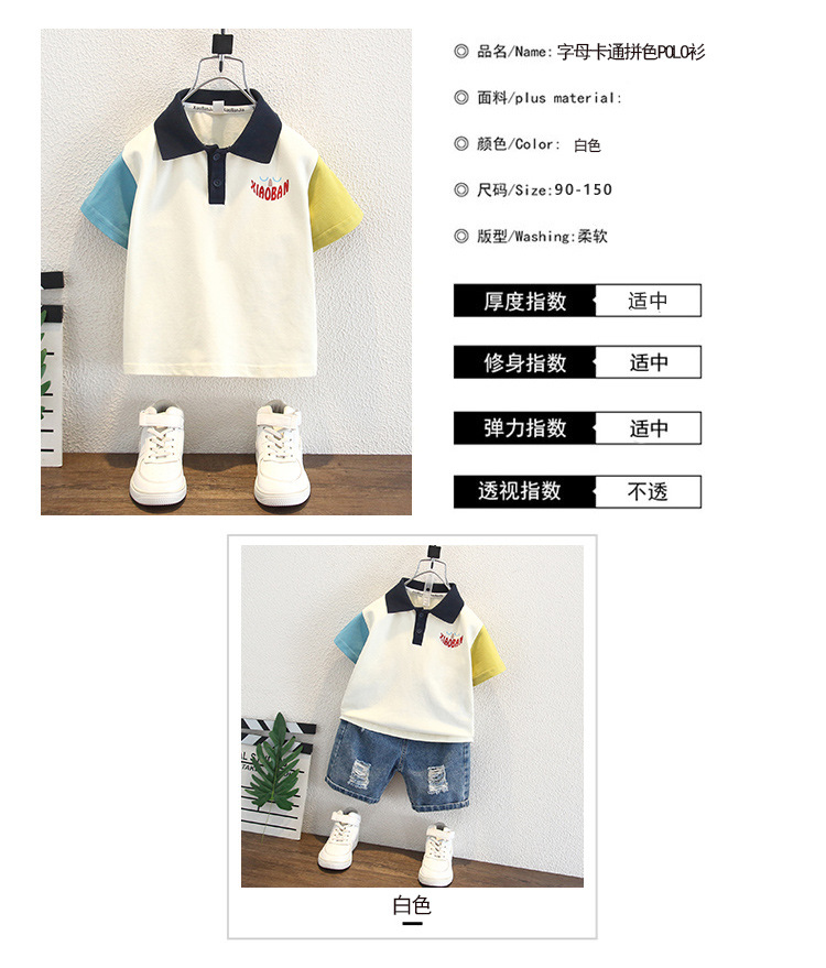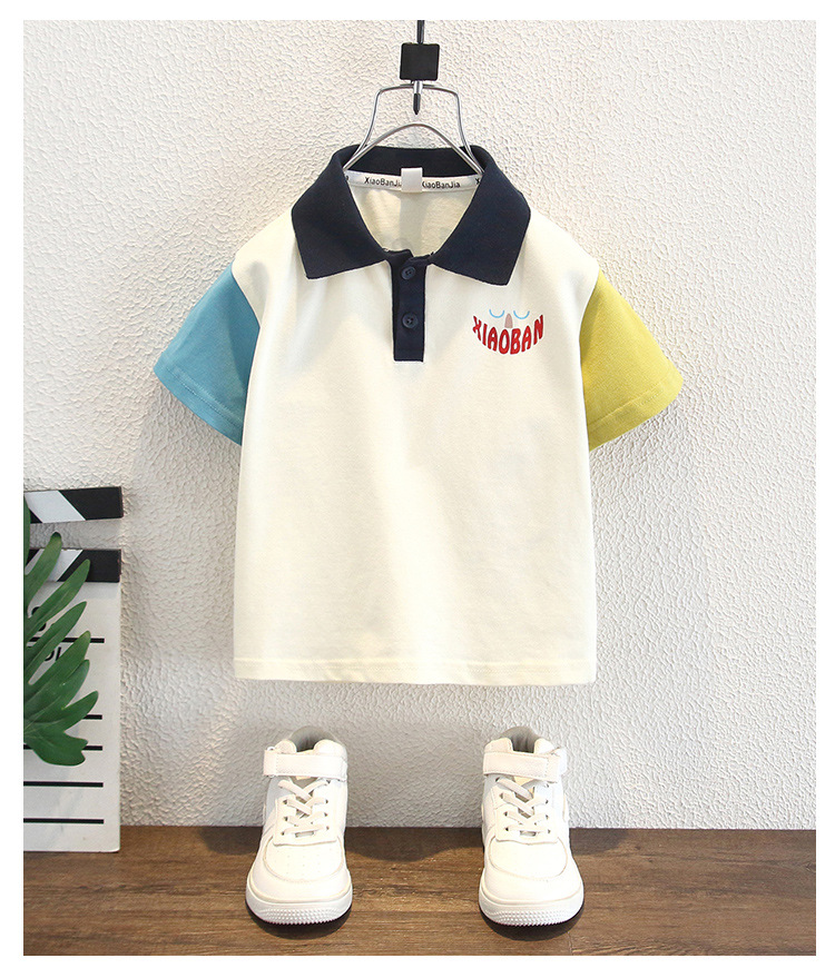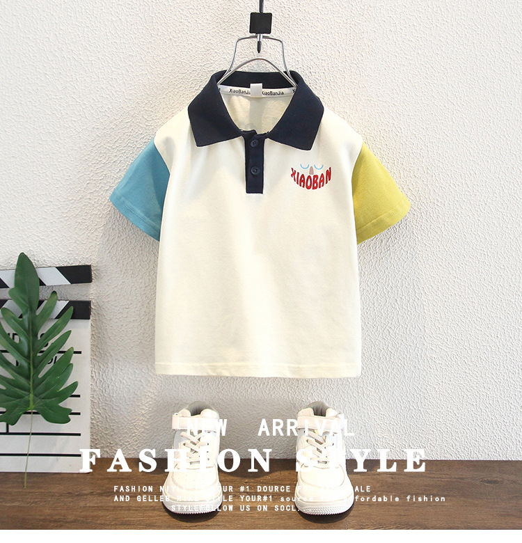 8244 ボーイズサマー Tシャツ子供韓国風ラペル半袖ポロシャツトップボーイズ夏服薄いトレンディなスタイル
