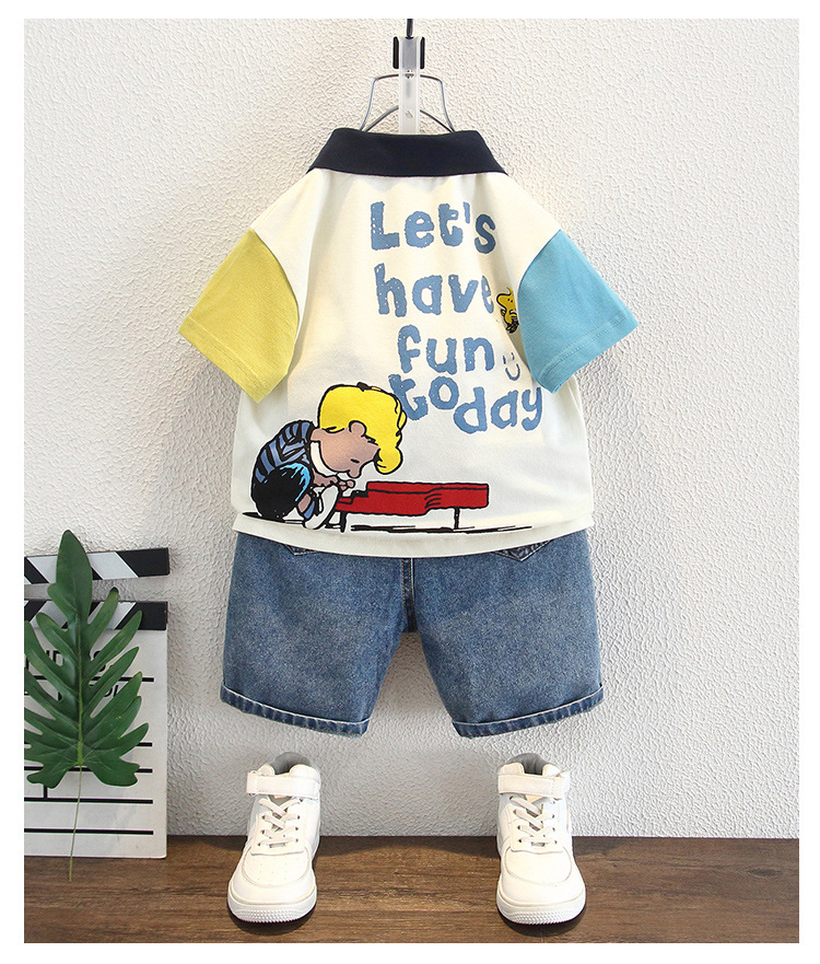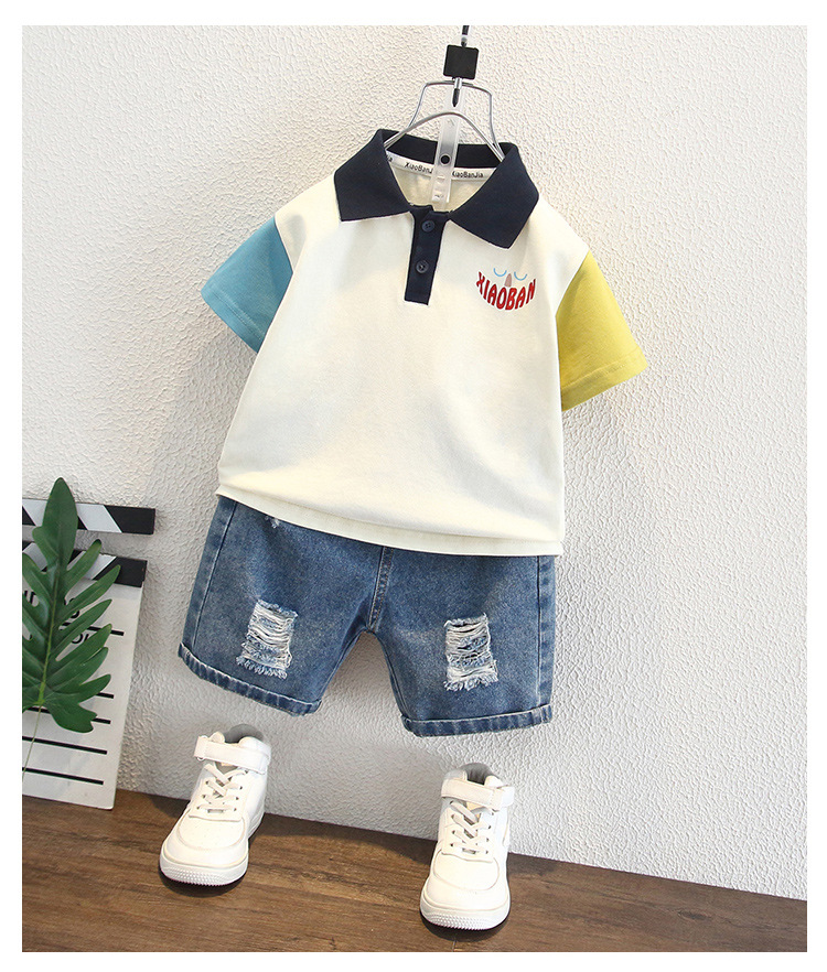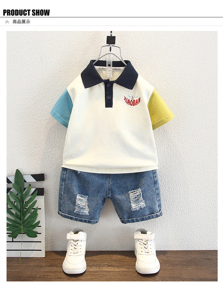 8126男の子用夏服セット2025新型子供用デニム半袖ベスト3点セット男の子用夏服