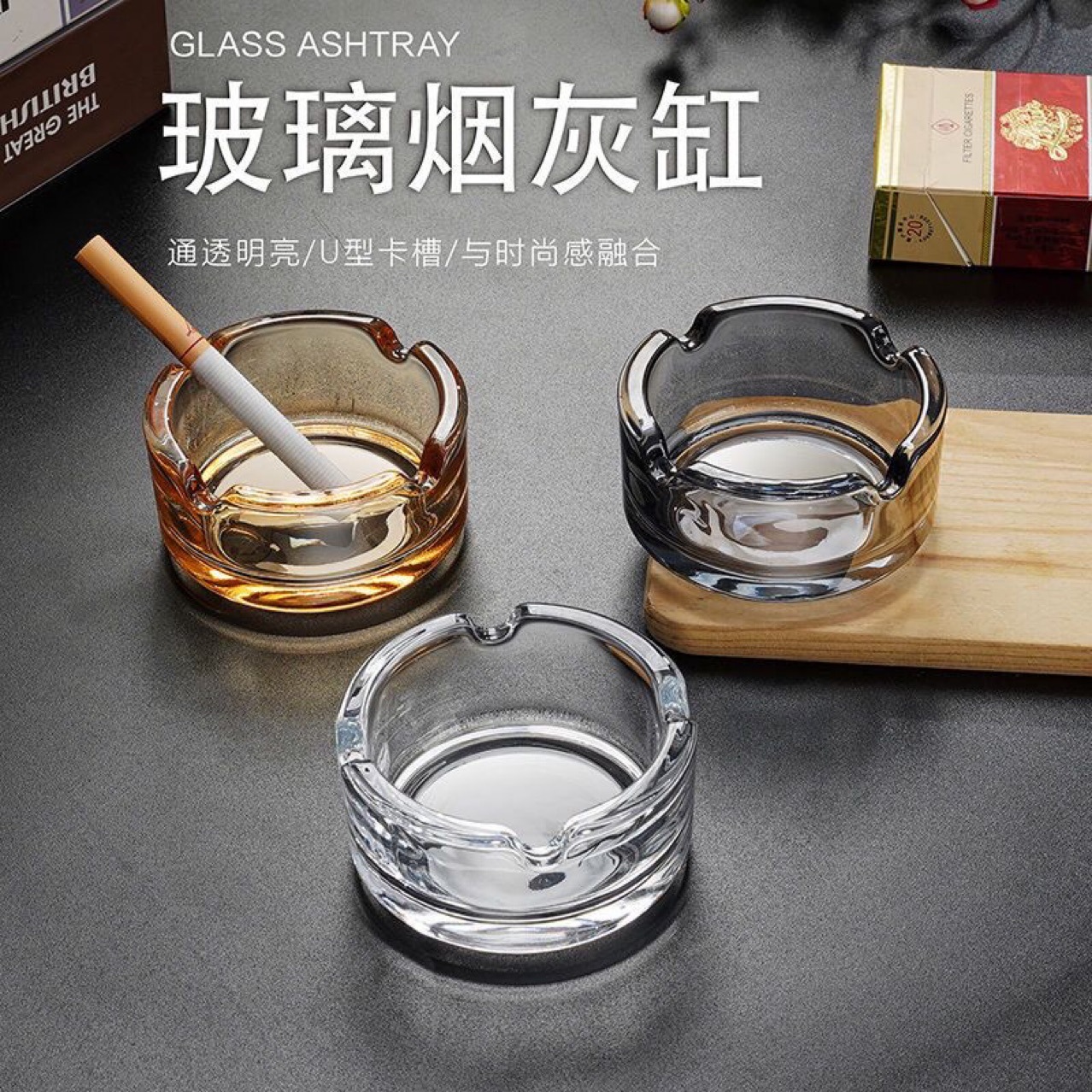 高級ガラス灰皿クリエイティブ家庭用リビングルーム商用ホテル卸売オフィス灰皿ホテル高級リビングルーム
