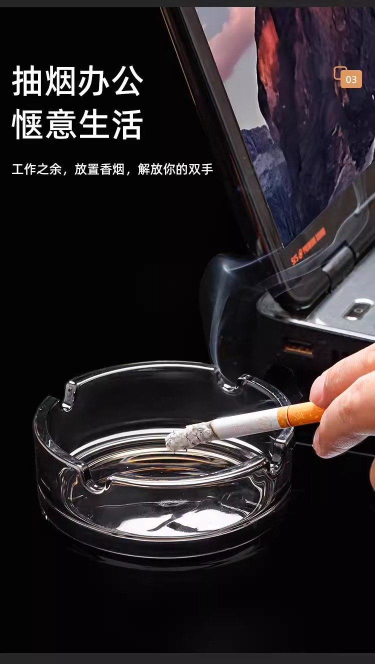 现货批发玻璃烟缸圆形烟灰缸酒店客房会所办公会议室用摆件印LOGO