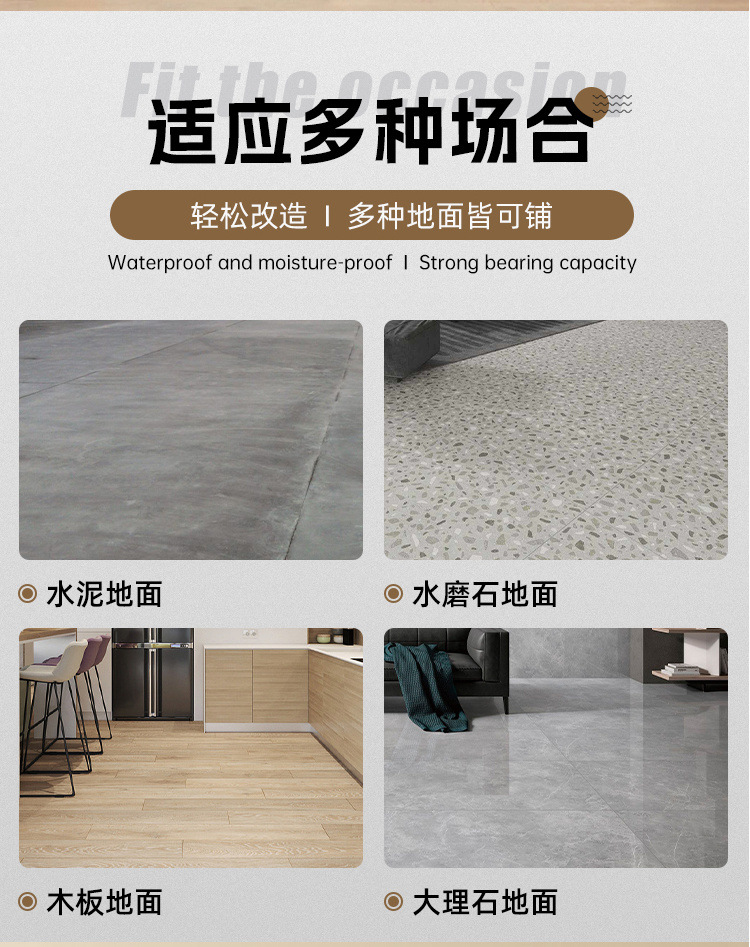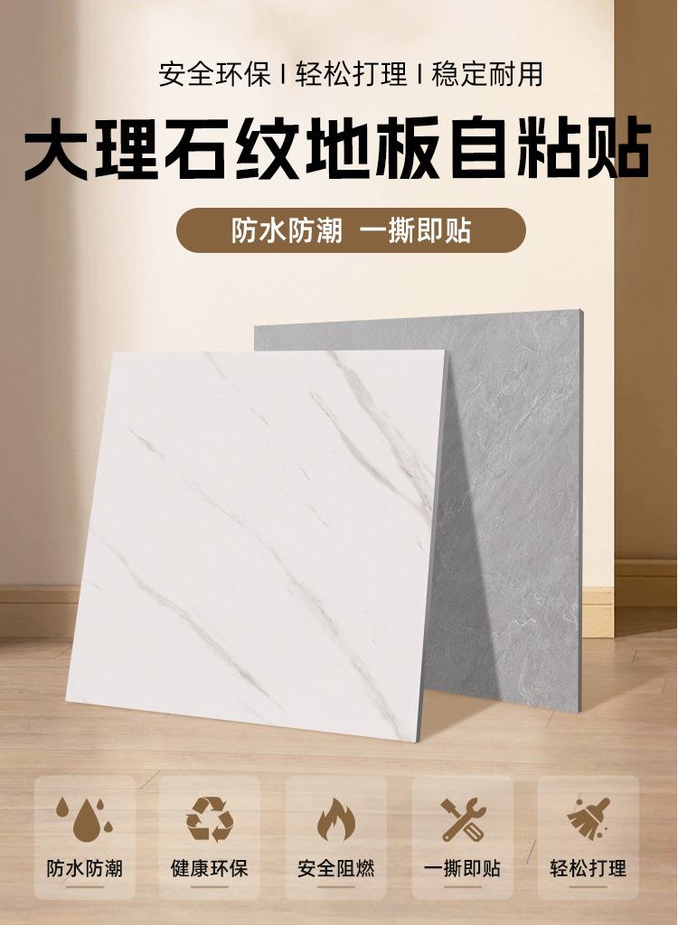 pvc地板贴自粘加厚耐磨防水家用塑胶地板革水泥地直接铺仿瓷砖垫