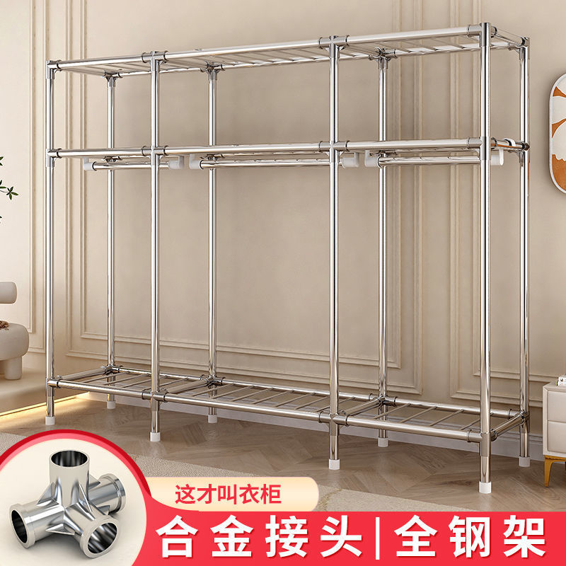 合金ジョイントシンプルな鋼管布ワードローブホームベッドルーム厚く強化されたワードローブスチールフレームワードローブ家具工場
