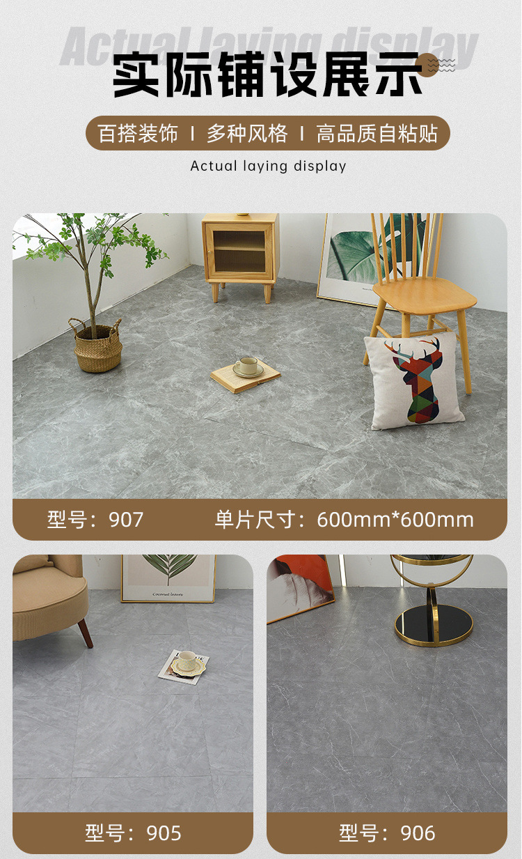 [60*60 マット] 自己粘着防水増粘プラスチック床セメント PVC 床ステッカー模造タイル床