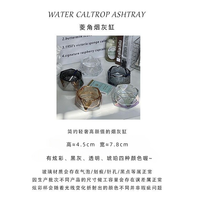 新款水晶玻璃烟灰缸ins高颜值客厅办公室家用轻奢菱格款酒店烟缸
