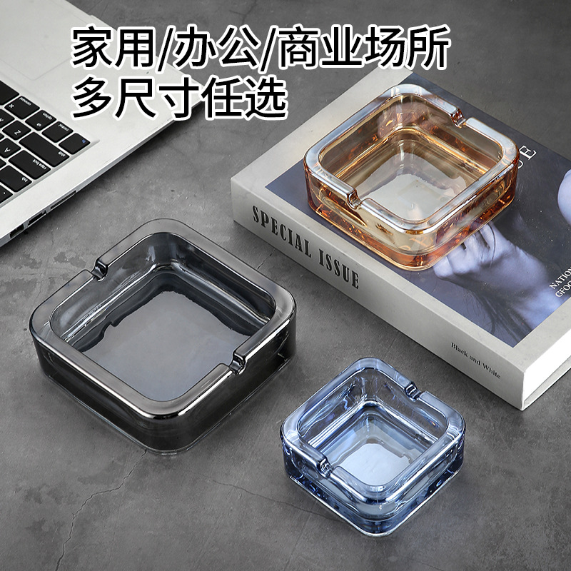 [ロゴ印刷可能] ホテル商業リビングルーム家庭用正方形防塵ガラス灰皿オフィスタバコ