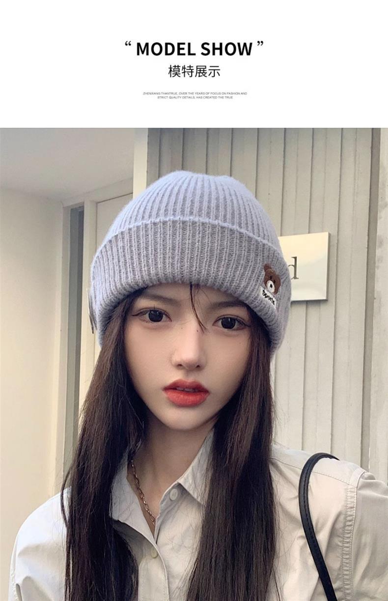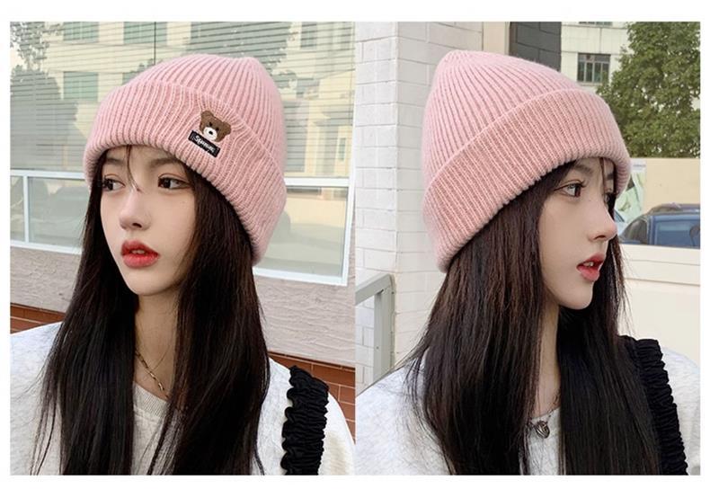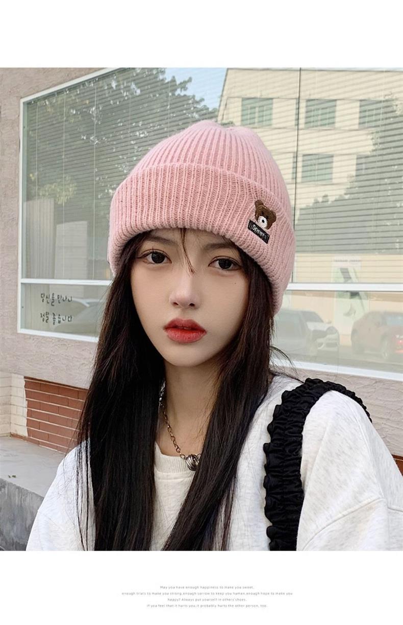 小熊帽子女秋冬可爱护耳毛线帽骑车百搭针织帽显脸小月子帽潮情侣