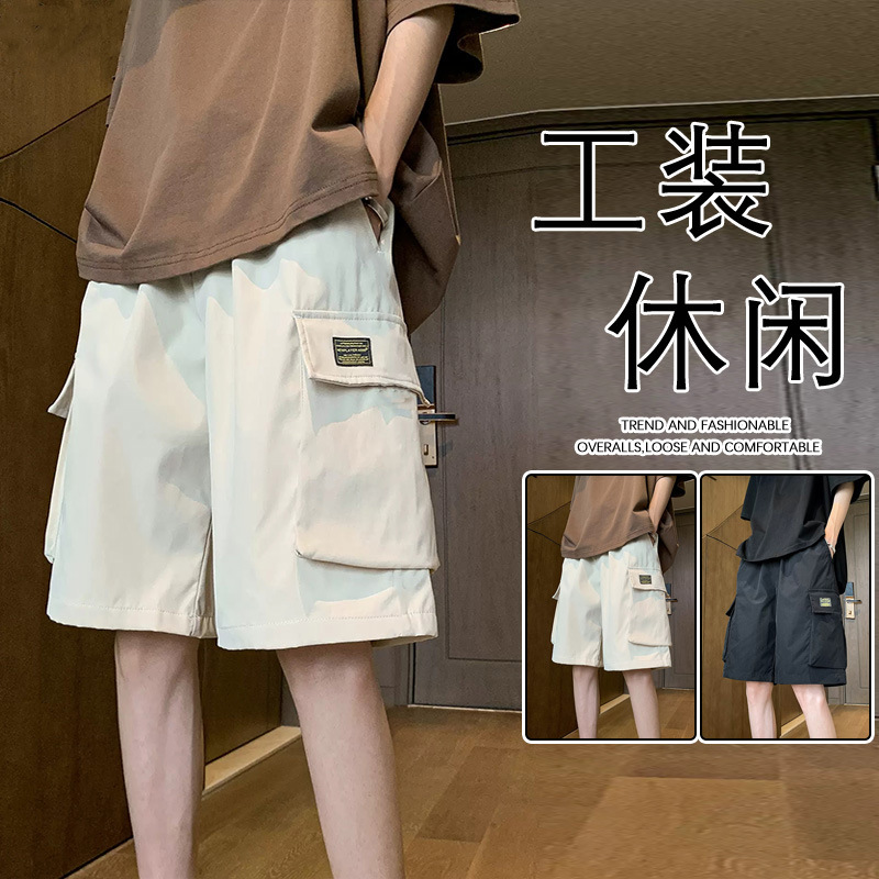 外贸跨境男士夏季薄款潮牌工装短裤运动裤外穿冰丝百搭五分休闲裤
