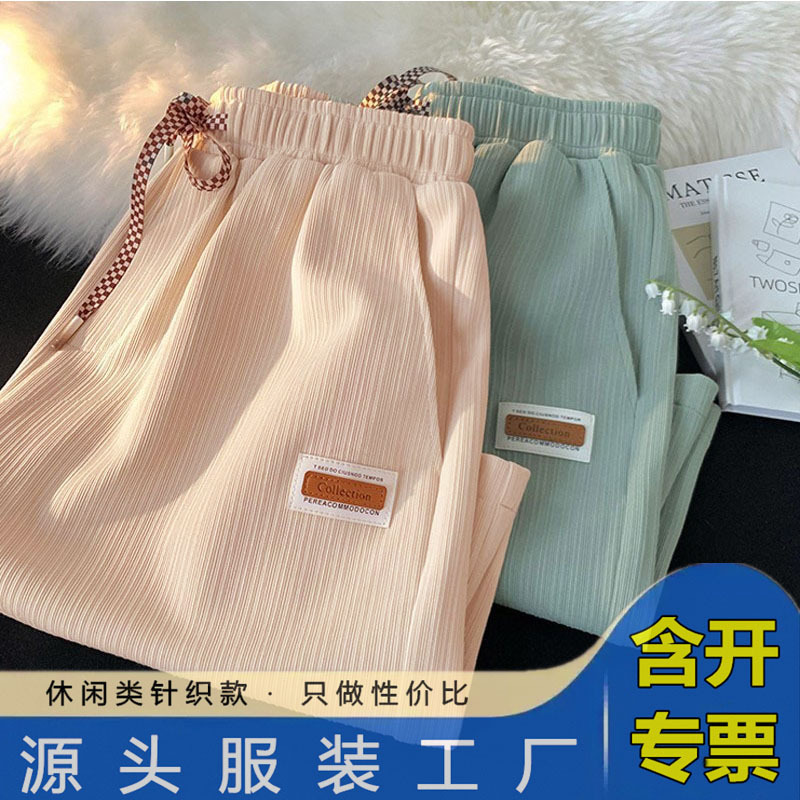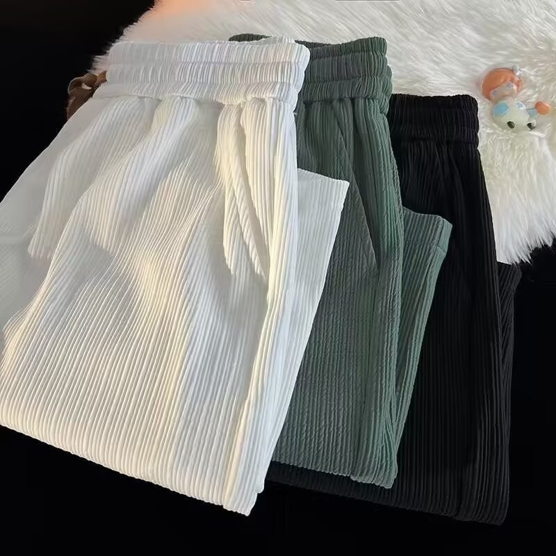男女カップルは夏の薄い氷糸の高級感のあるワイドパンツを着て、ゆったりとしたカジュアルなズボンのストレートパンツをデザインします。