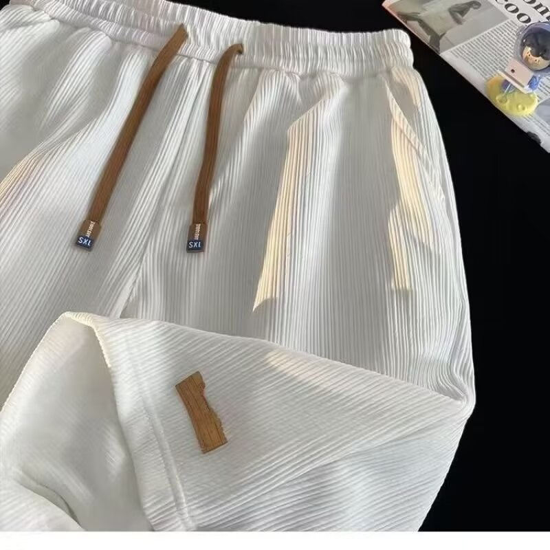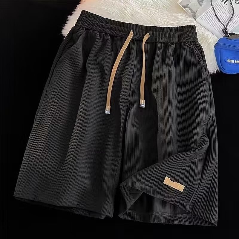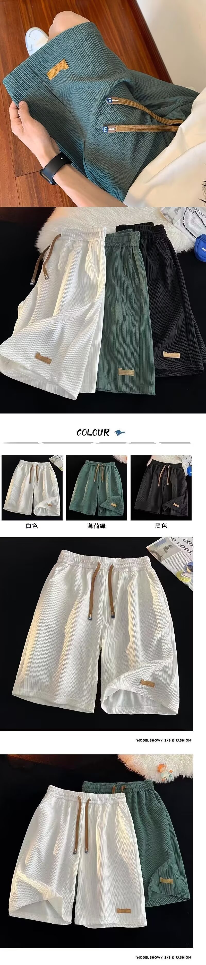 跨境华夫格短裤男夏季薄款宽松休闲中裤2025新款运动五分裤子男士