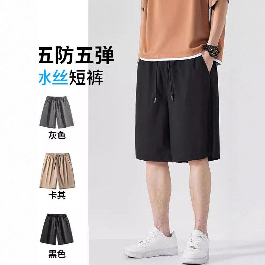 夏の新作メンズ薄いアイスシルクカジュアル多用途ルーズトレンディカジュアルルーズ大きいサイズ5点ショーツ