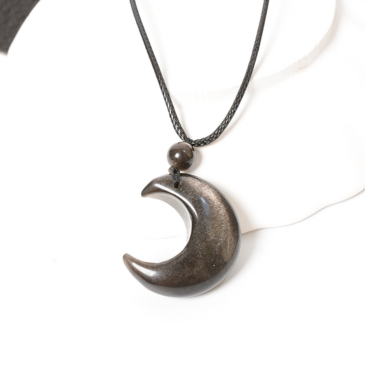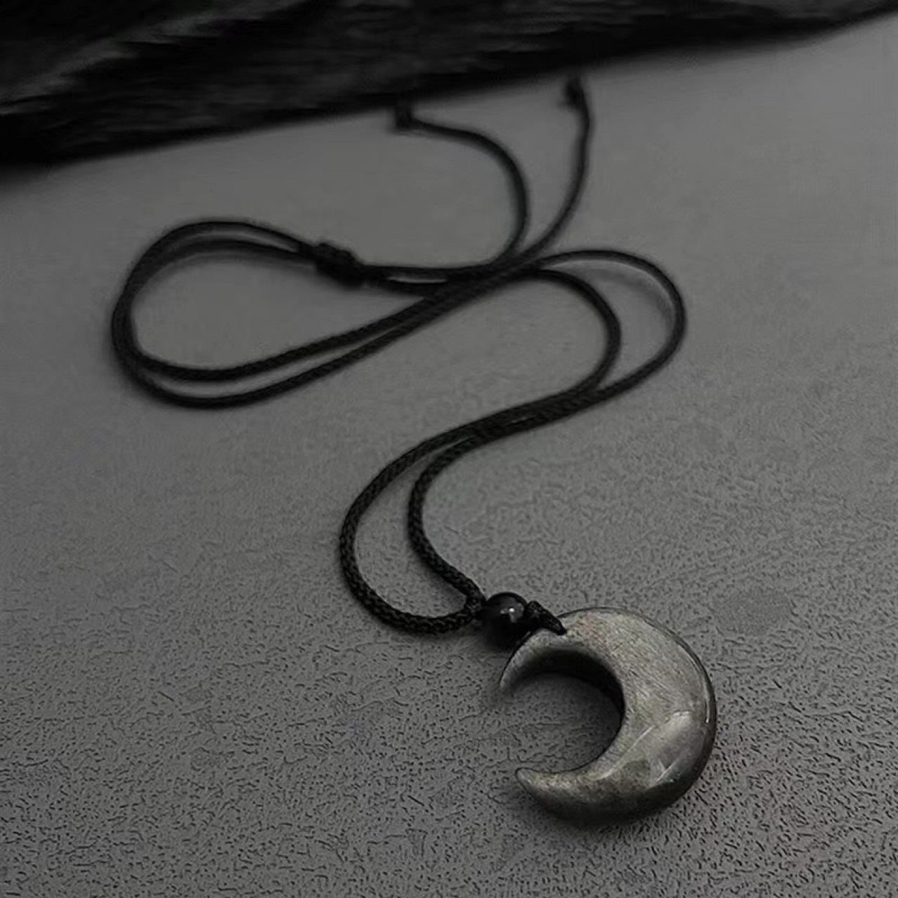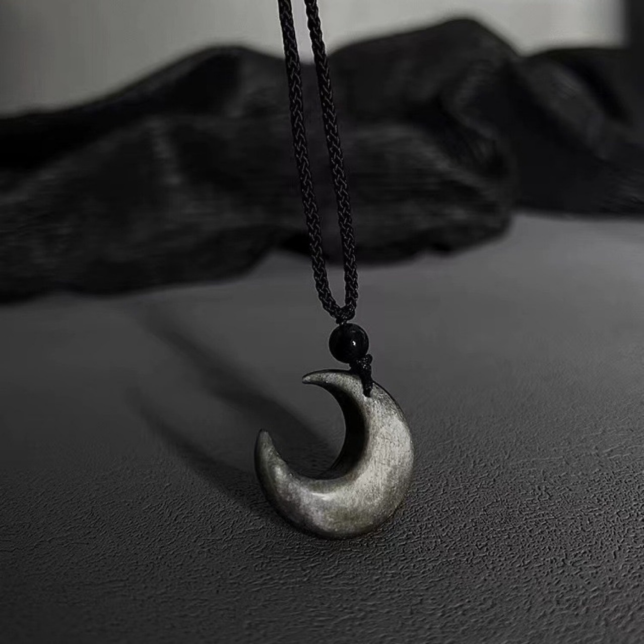 银耀石小月牙项链 黑曜石雕刻月亮 颈链精品复古项链绳白月光百搭