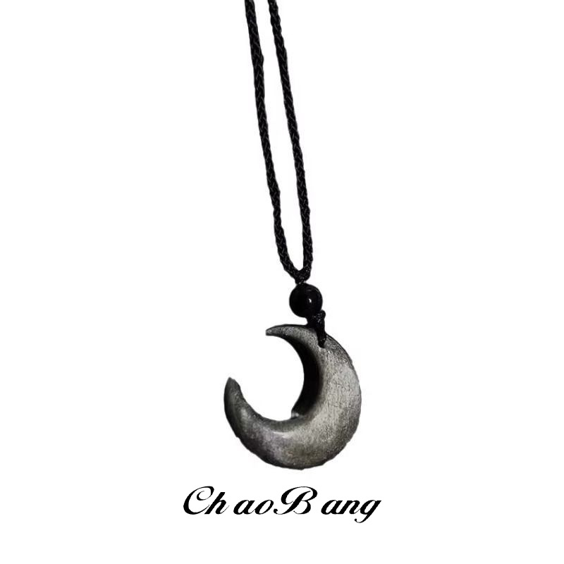 シルバーストーンブラックムーンネックレス三日月ペンダントファッション個性ニッチメンズペンダントチェーンシンプルな手作りネックレス