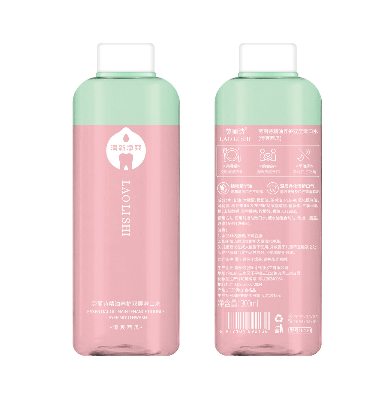 正品劳丽诗精油养护双层漱口水大容量300ml深层净化清新空气漱口