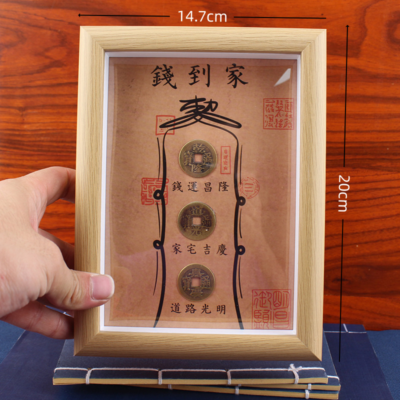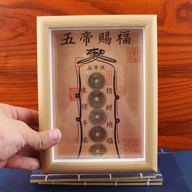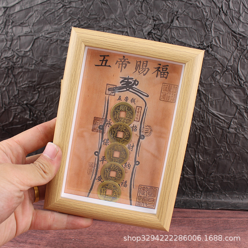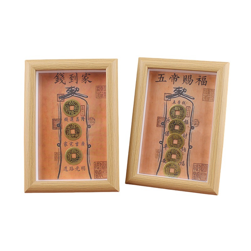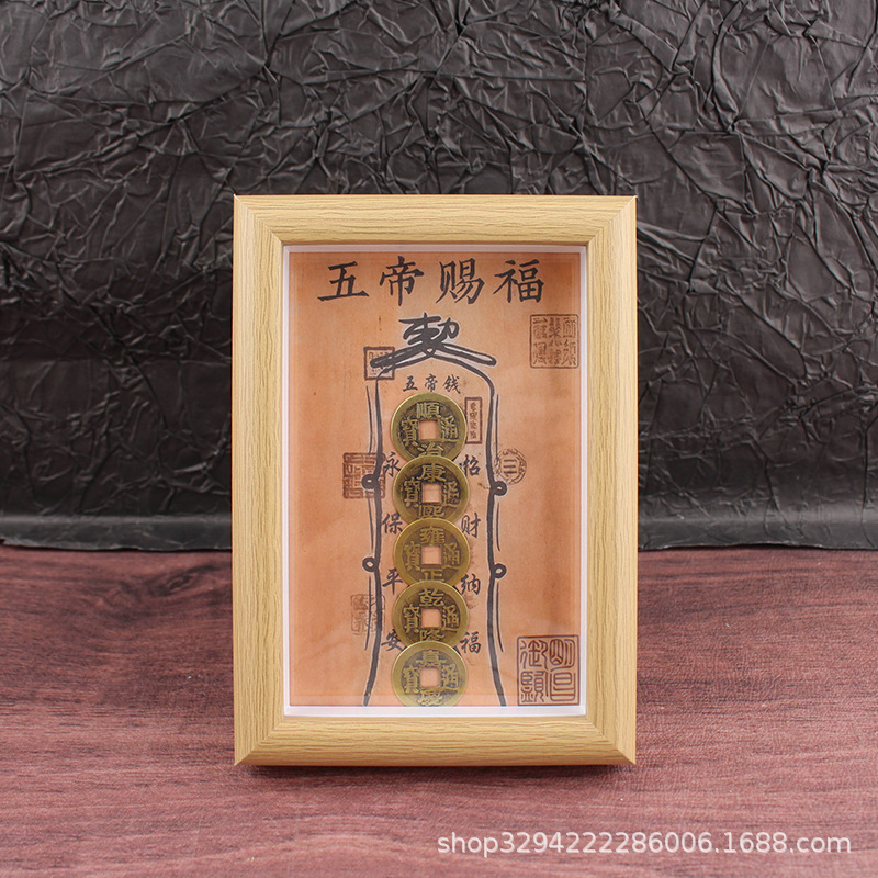道教の祝福と守護のフォトフレーム、真鍮の五帝のお金のフォトフレーム、国民的トレンドの装飾品、お金が帰ってくる、デスクトップの金庫のフォトフレーム、テーブルセッティング