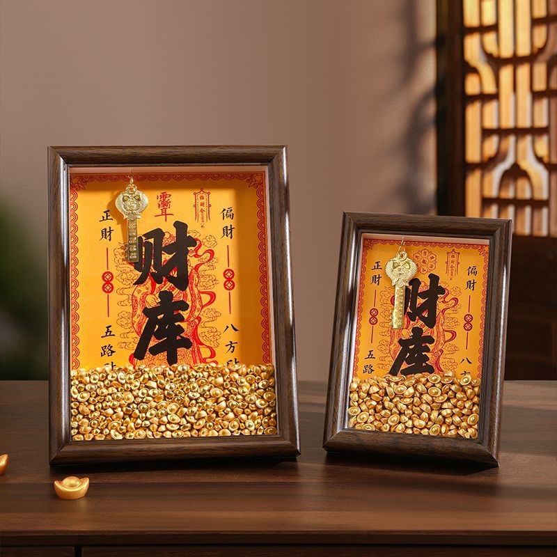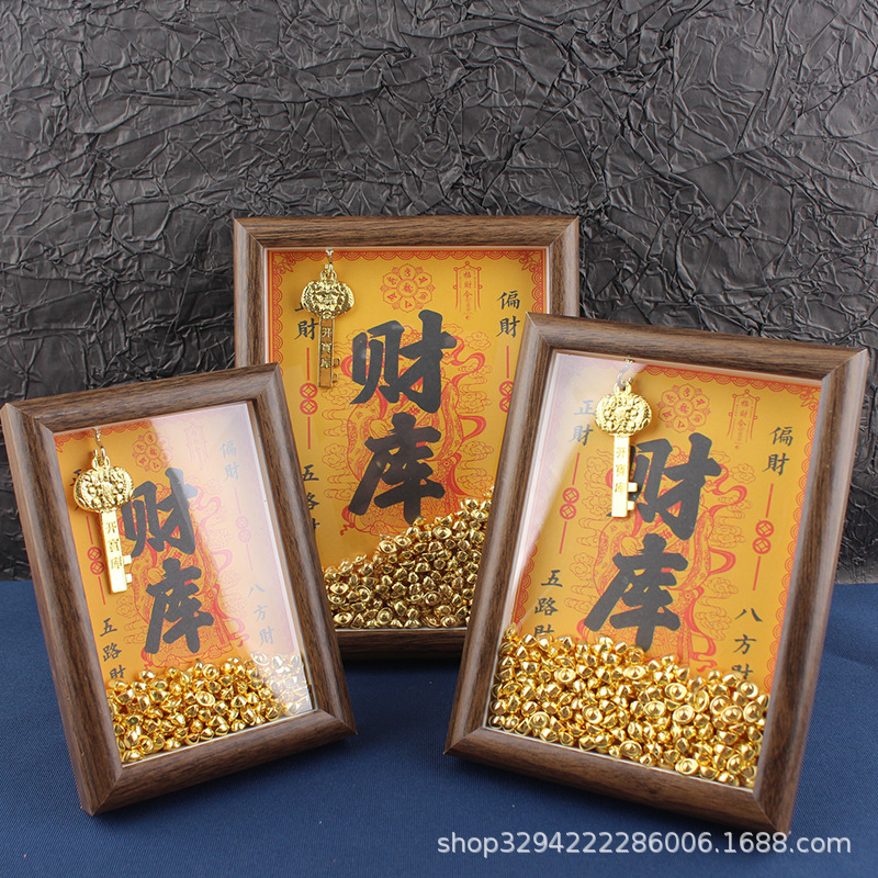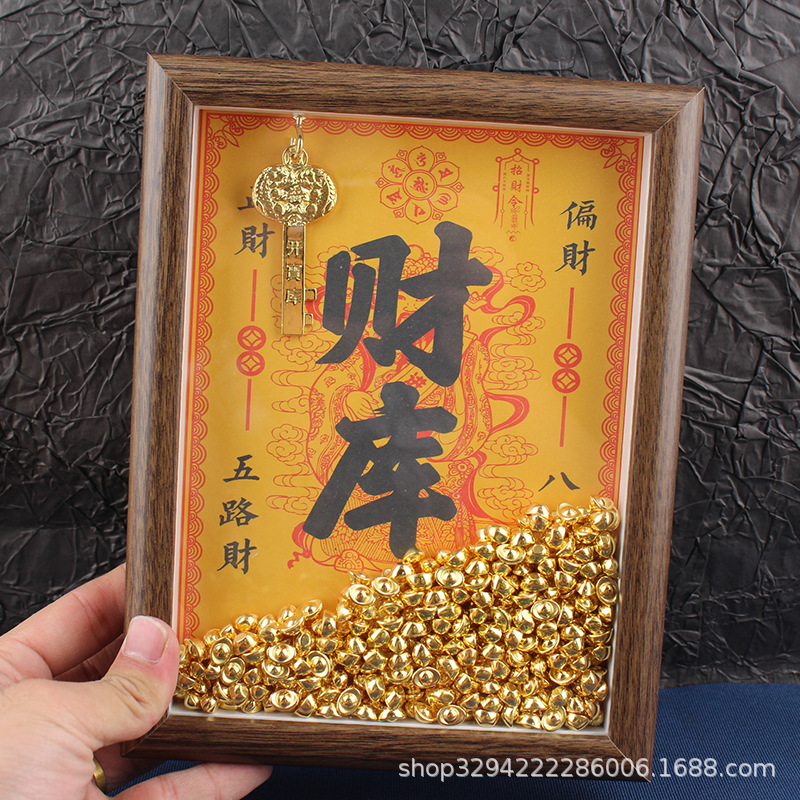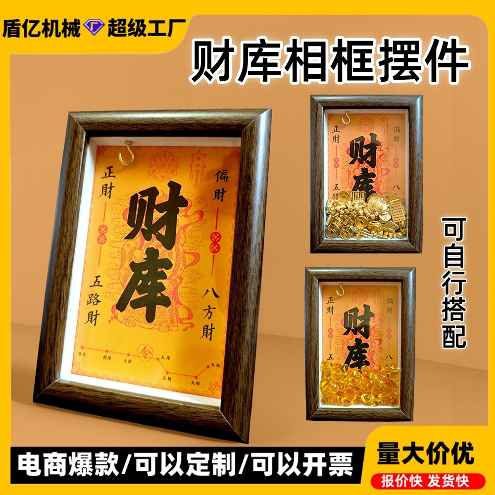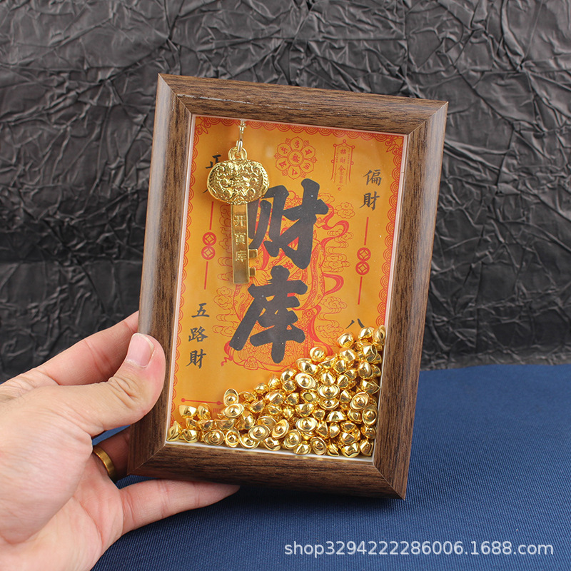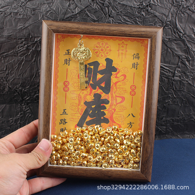 现货木质财库相框摆件招财相框金库相框元宝相框招财神亮面小元宝