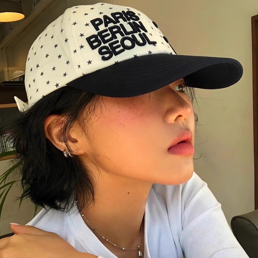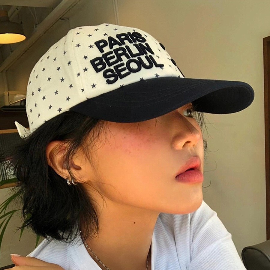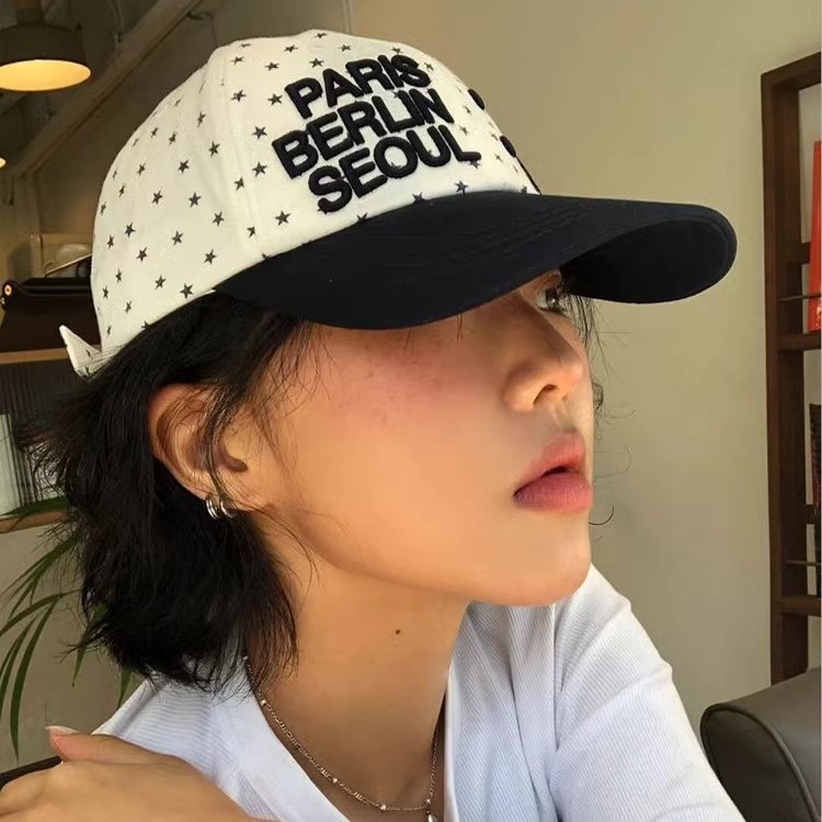 韩国潮牌新款双拼笑脸鸭舌帽波点星星字母刺绣街头棒球帽嘻哈女生