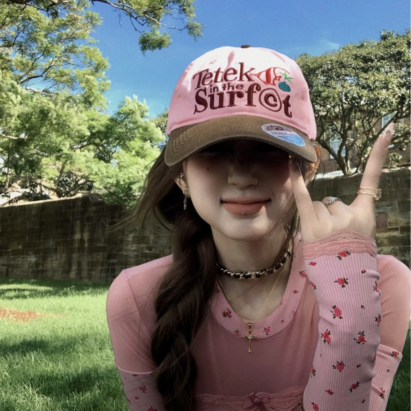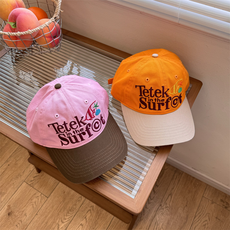 韩国小众撞色拼接刺绣复古鸭舌帽女软顶百搭显脸小情侣遮阳棒球帽
