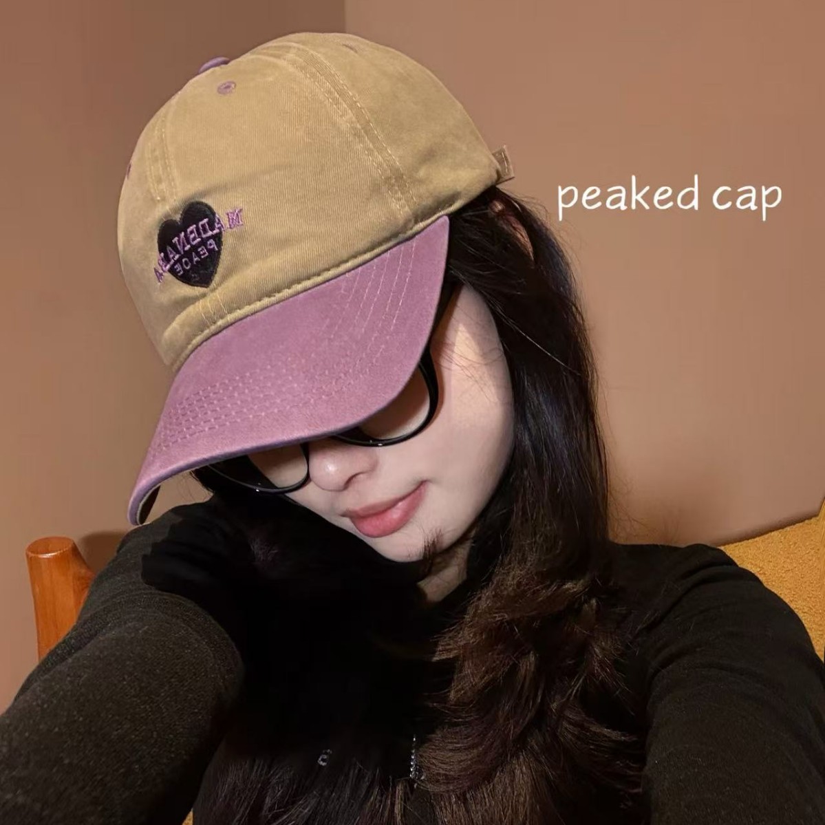 高品質韓国版カジュアル新スタイルコントラストカラーハート型刺繍多用途野球帽女性用トレンディなアヒルの舌帽子男性用