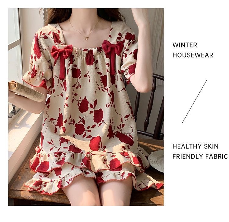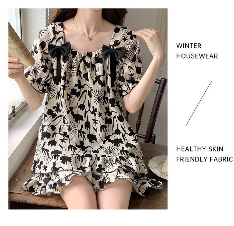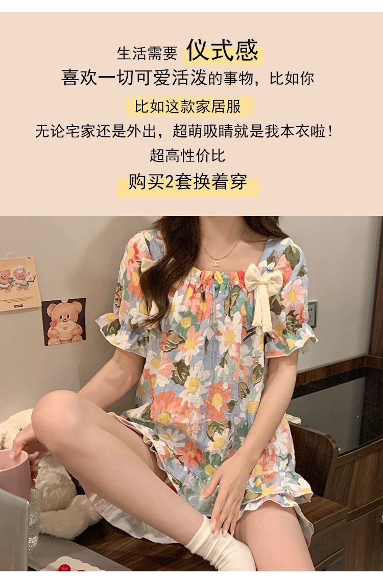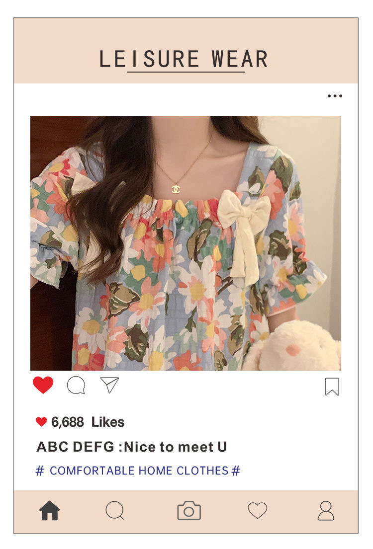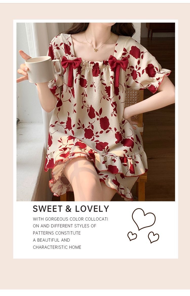 睡裙女夏季睡衣短袖带胸垫薄款可爱花朵宽松新款可外穿夏天家居服