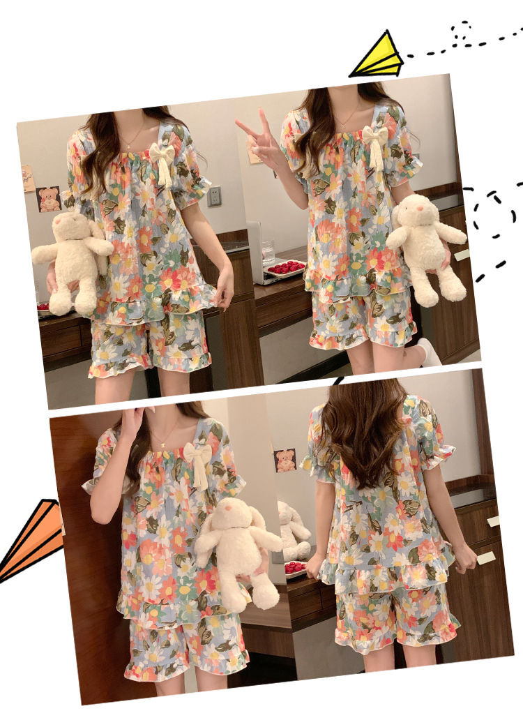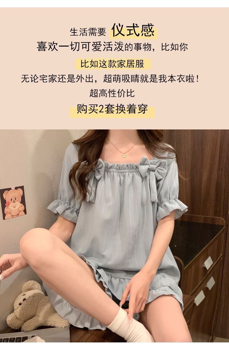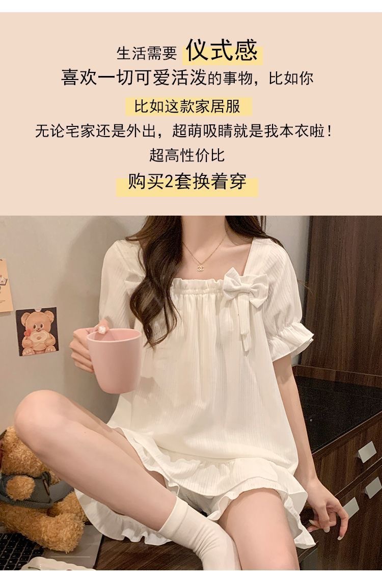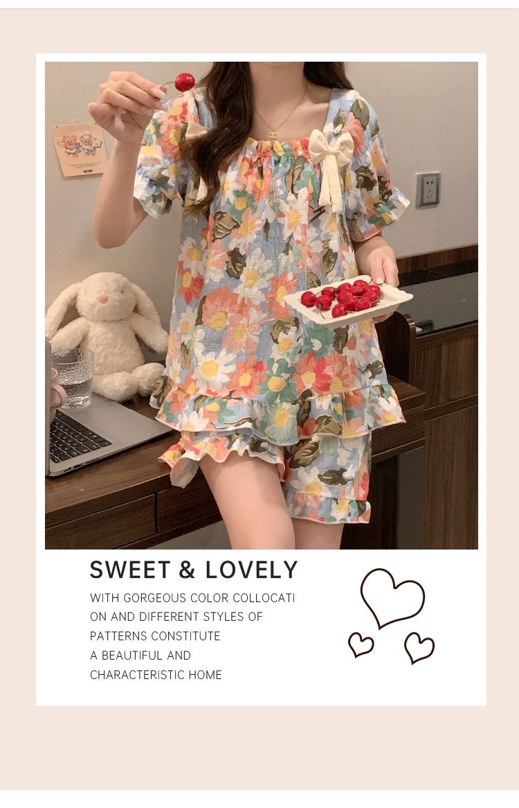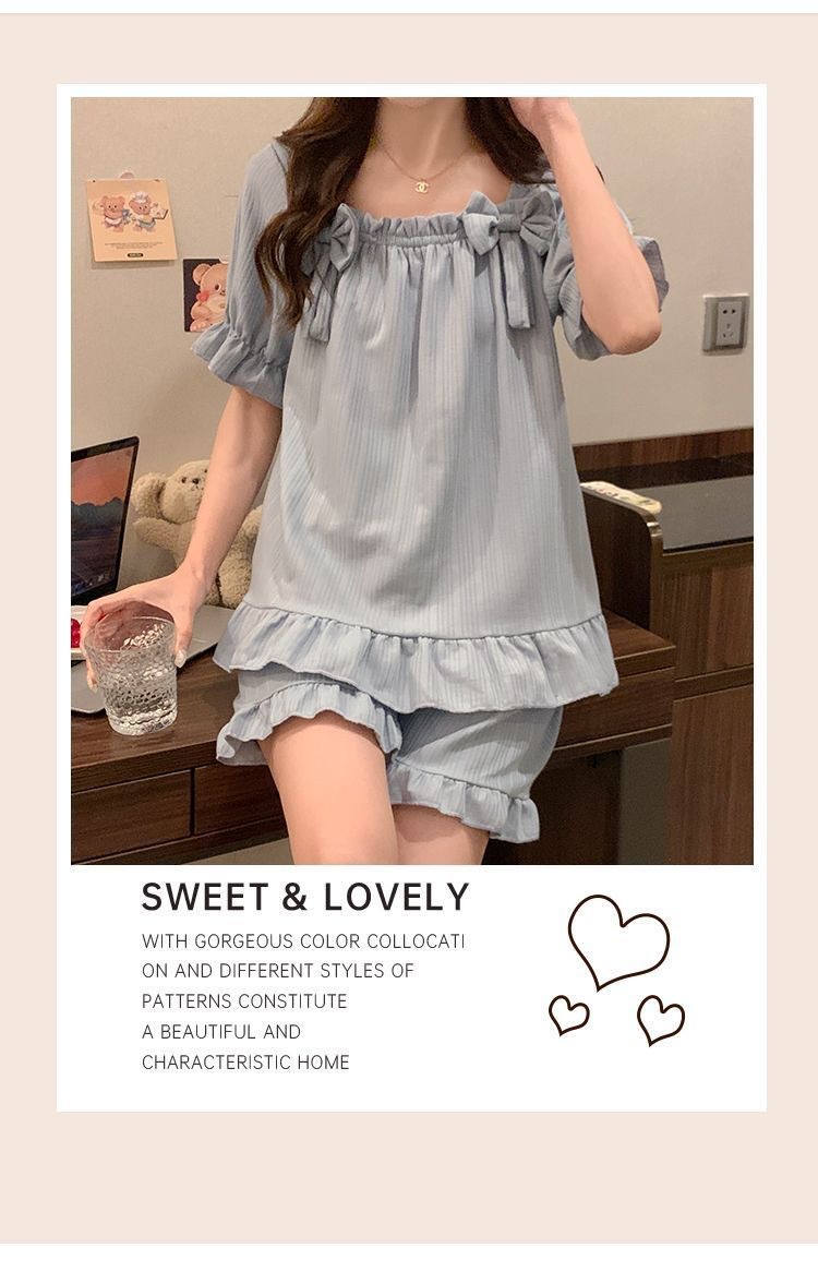 夏のパジャマの女性の爆発物は固定胸パッドを持っています。学生の甘い家庭服の大きいサイズはパジャマの少女を着ることができます。