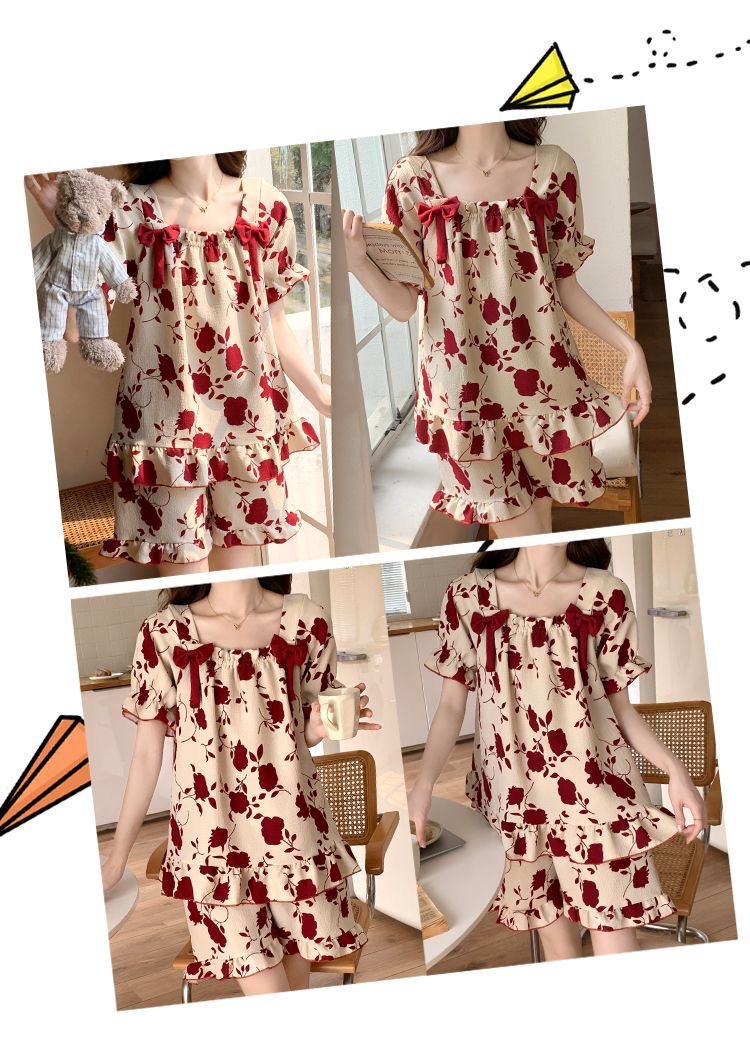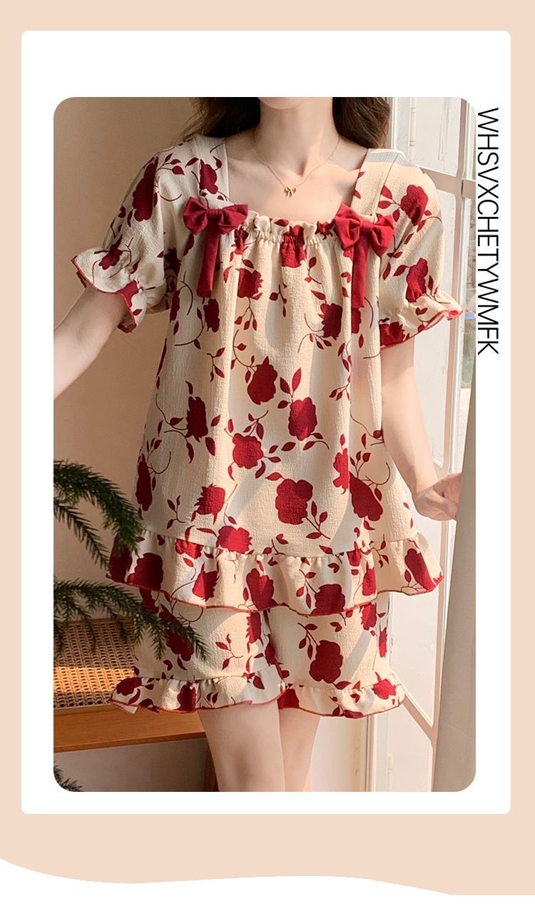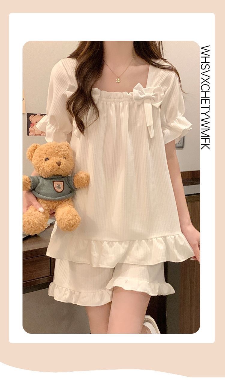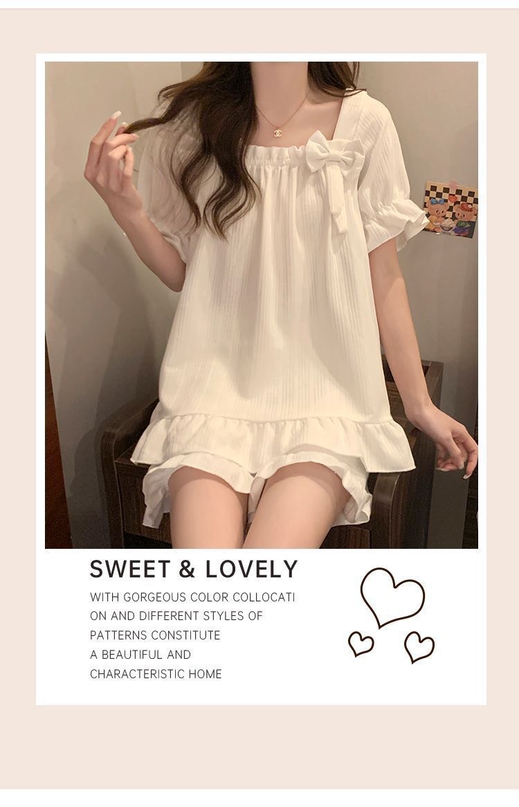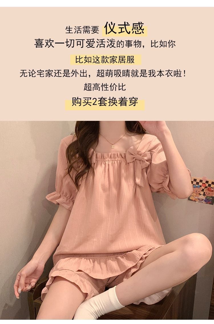夏のパジャマの女性の爆発物は固定胸パッドを持っています。学生の甘い家庭服の大きいサイズはパジャマの少女を着ることができます。