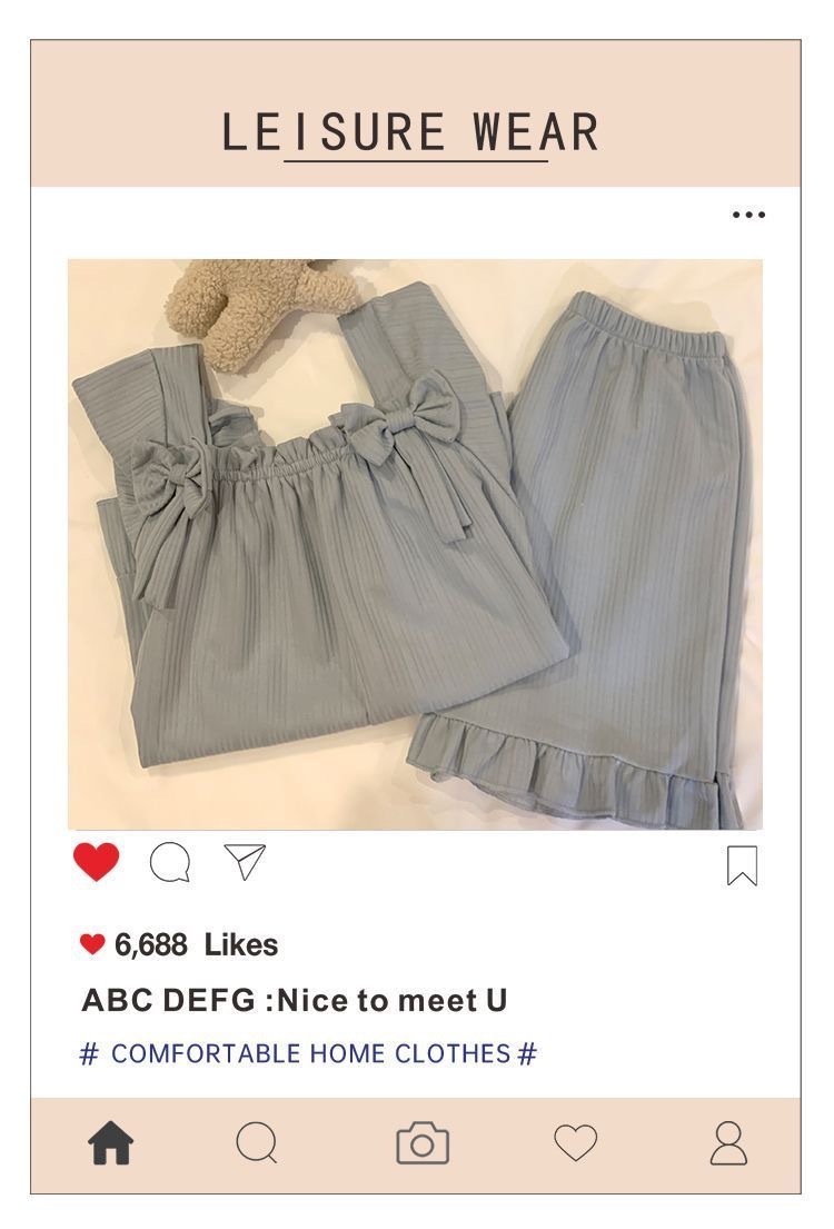 サスペンダーパジャマ女性の夏の季節綿甘い小さな新鮮なブルーガール胸パッド付きプリンセススタイルホームウェアセット