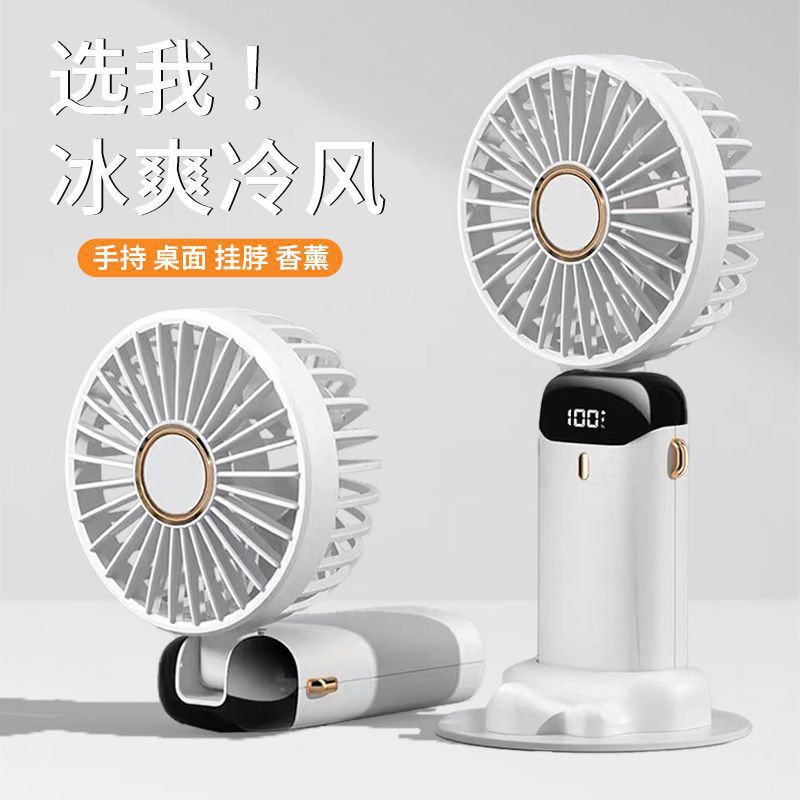 跨境N15折叠静音香薰手持小风扇USB充电便携迷你桌面数显电风扇