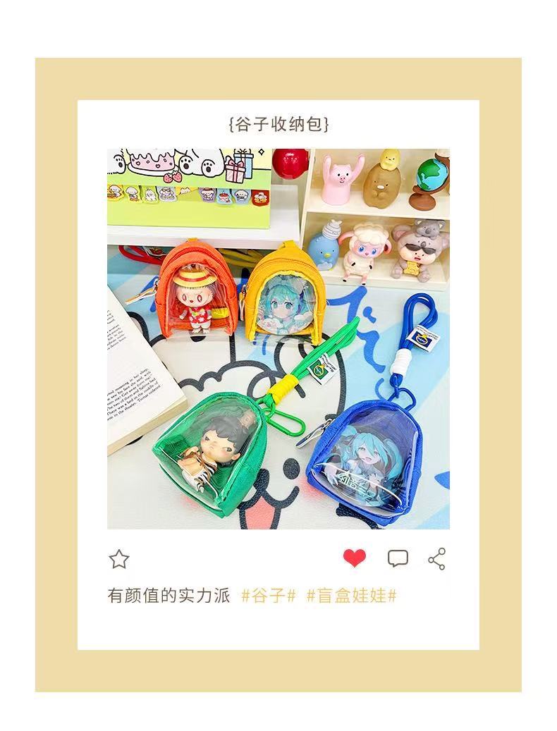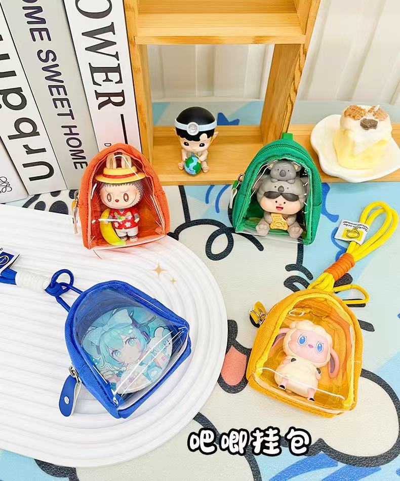 原创毛绒吧唧透明收纳包迷你可爱零钱包帆布耳机包谷子收纳挂包